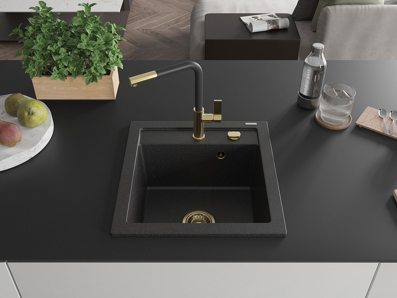 A mosogató kiváló minőségű gránitból készül. Ez egy elegáns és mindenekelőtt minden konyhához praktikus kiegészítés, stílusától függetlenül. A kiváló minőségű és a gránit tartósság biztosítja a sok éves használatát.