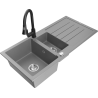 Mexen Andres gránit mosogató 1,5 rekeszes csöpögtetővel és Elia konyhai csapteleppel, fekete/ezüst metál - 6515-73-670101-70