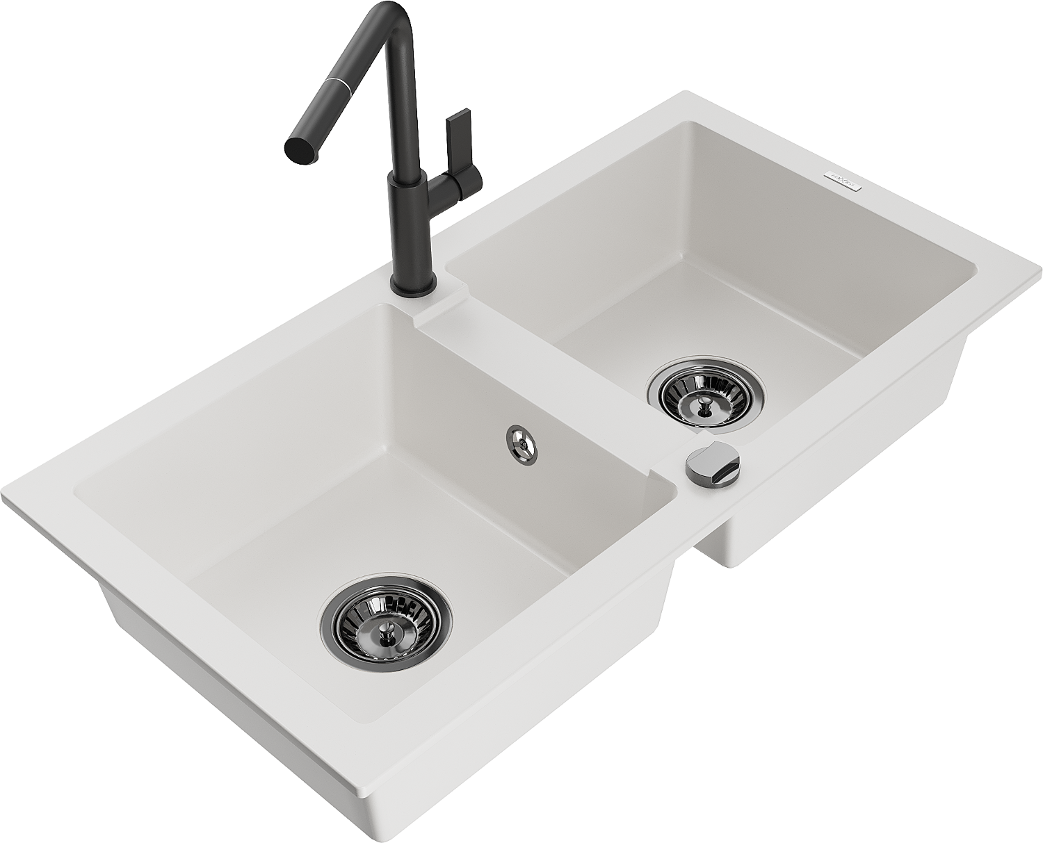 Mexen Mario kéttálcás gránit mosogató Flora konyhai csapteleppel, fehér - 6504-20-670401-70-B