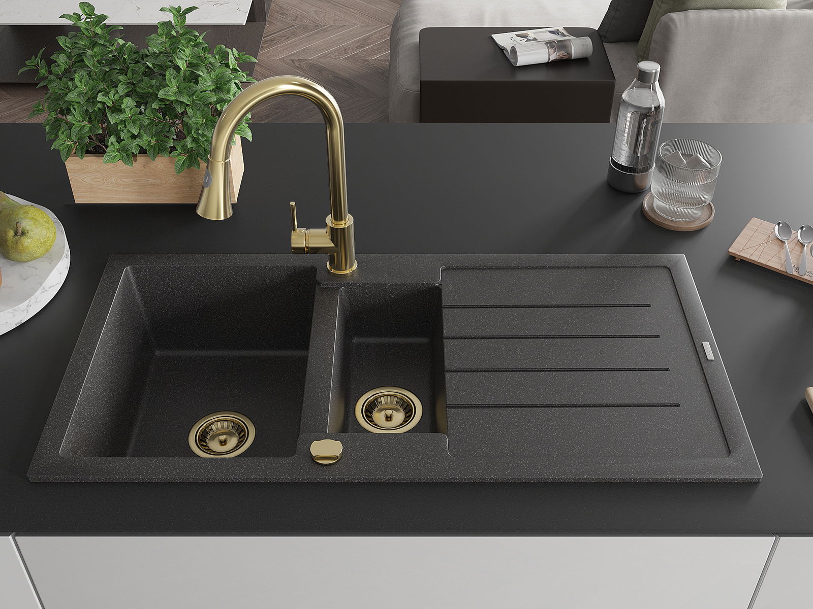 A mosogató kiváló minőségű gránitból készül. Ez egy elegáns és mindenekelőtt minden konyhához praktikus kiegészítés, stílusától függetlenül. A kiváló minőségű és a gránit tartósság biztosítja a sok éves használatát.