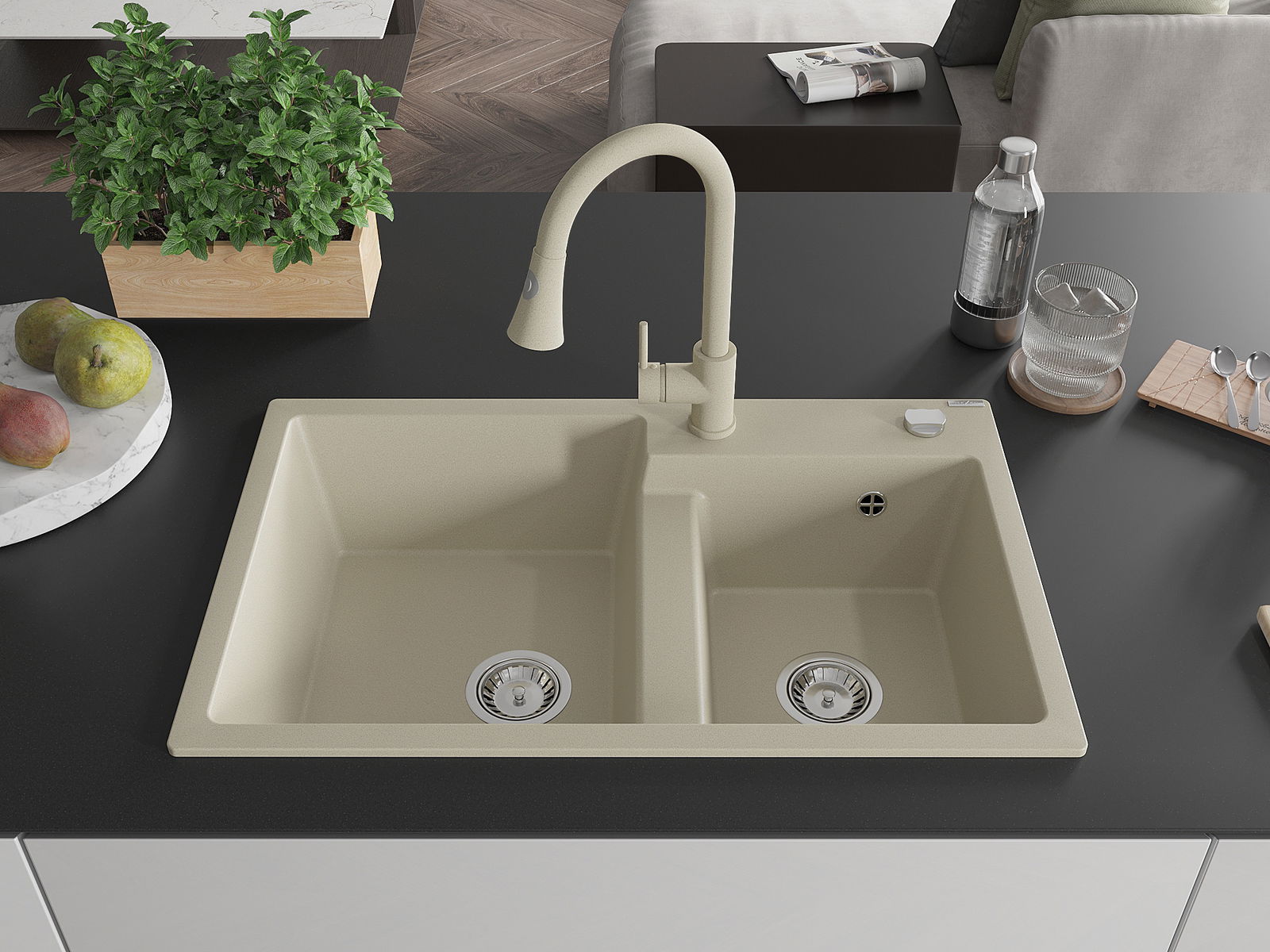Mexen Tomas 2 kamrás gránit mosogató Elia konyhai csappal, bézs - 6516-69-670101-69