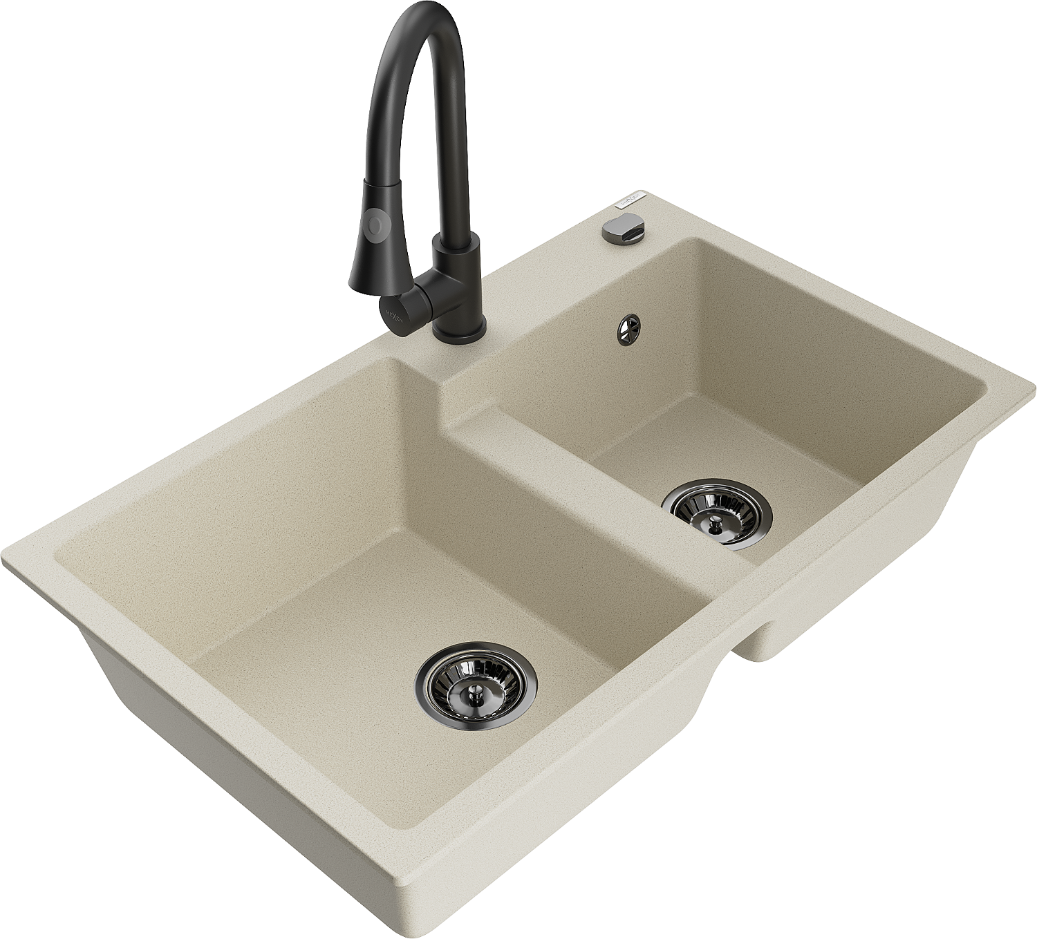 Mexen Tomas 2 rekeszes gránit mosogató Elia konyhai csappal, bézs - 6516-69-670101-70