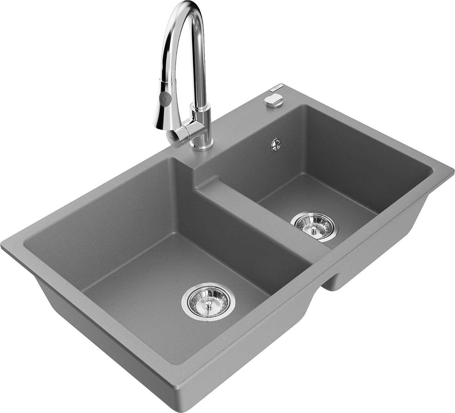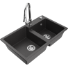 Mexen Tomas gránit mosogatótálca 2 rekeszes, Elia konyhai csapteleppel, szürke - 6516-71-670101-00