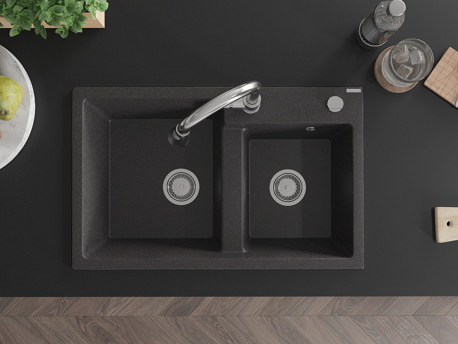 A mosogató kiváló minőségű gránitból készül. Ez egy elegáns és mindenekelőtt minden konyhához praktikus kiegészítés, stílusától függetlenül. A kiváló minőségű és a gránit tartósság biztosítja a sok éves használatát.