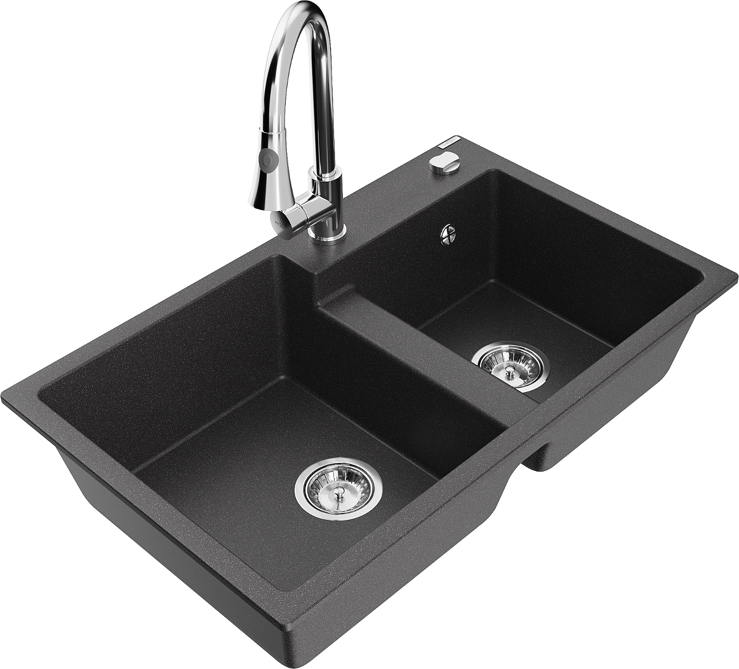 Mexen Tomas 2 rekeszes gránit mosogató Elia konyhai csapteleppel, fekete színű - 6516-76-670101-00