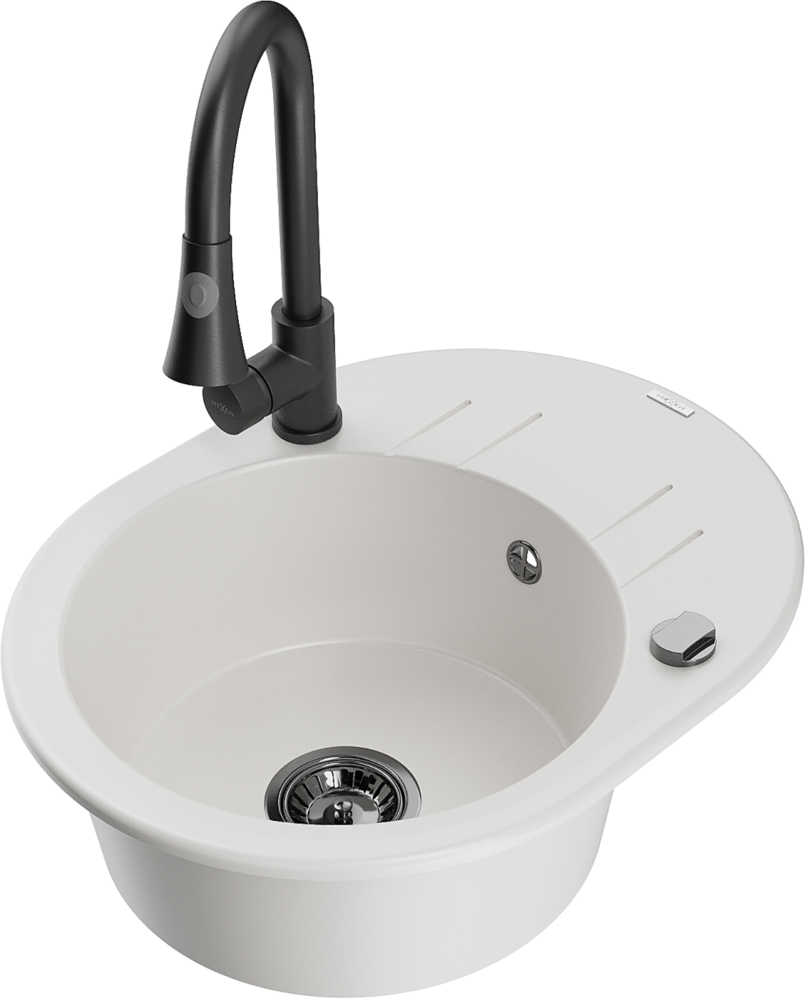 Mexen Kevin egymedencés gránit mosogató csepegtetővel és Elia konyhai csapteleppel, fehér - 6517-20-670101-70