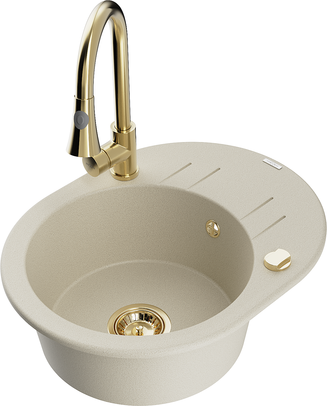 Mexen Kevin gránit mosogató 1-medencés csepegtetővel és Elia konyhai csapteleppel, bézs - 6517-69-670101-50