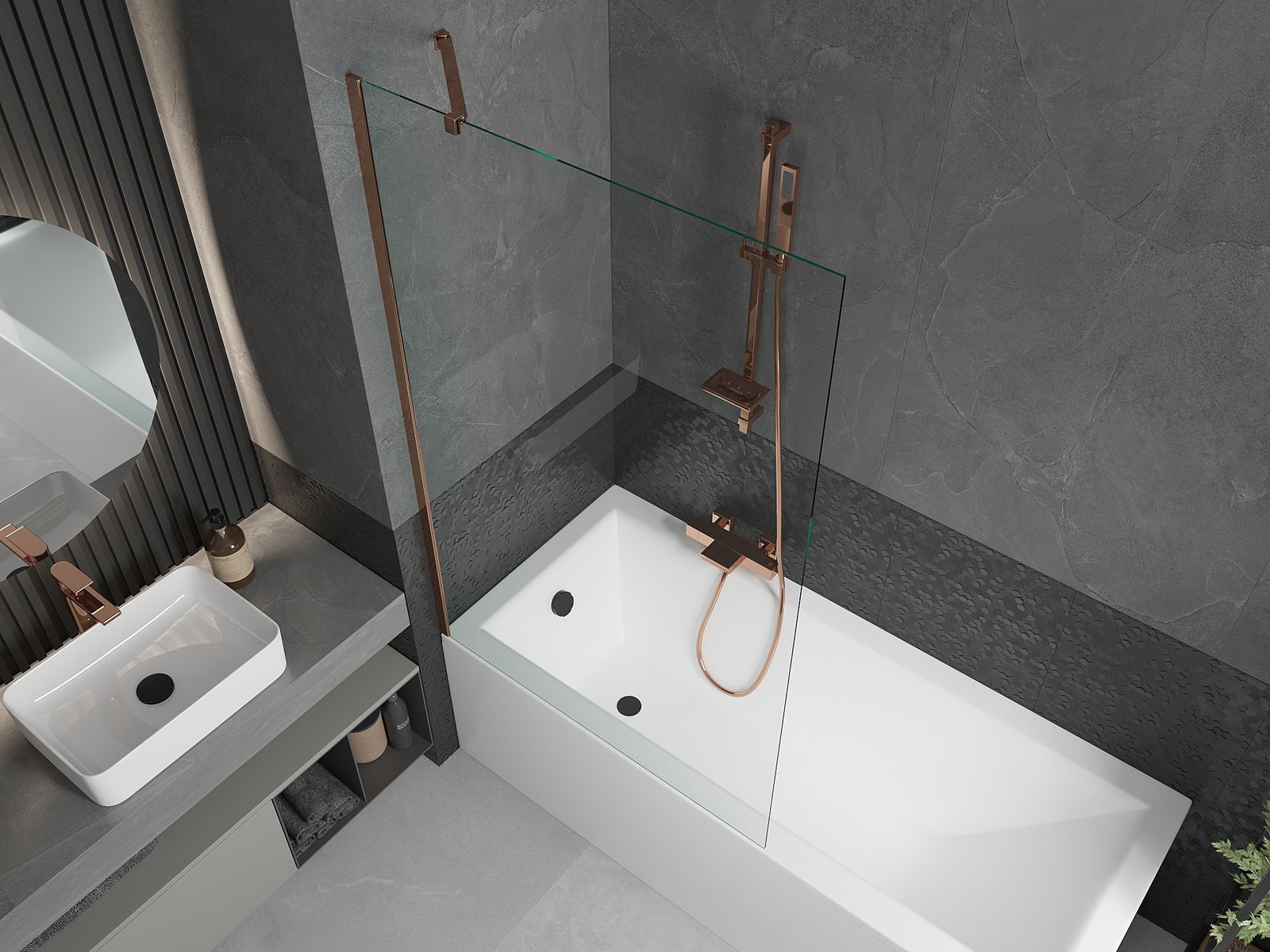 Mexen Next egyrészes fürdőszobai paraván 100 x 150 cm, átlátszó, rózsaarany - 895-100-000-00-00-60