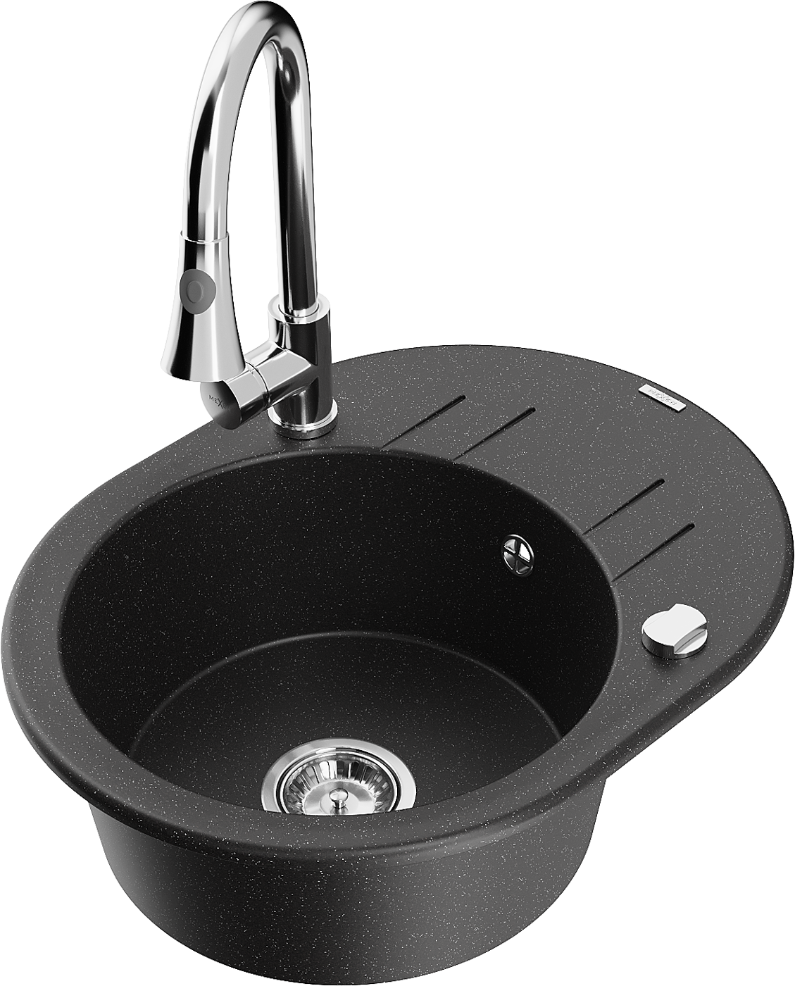 Mexen Kevin egymedencés gránit mosogató csepegtetővel és Elia konyhai csappal, fekete/ezüst metál - 6517-73-670101-00