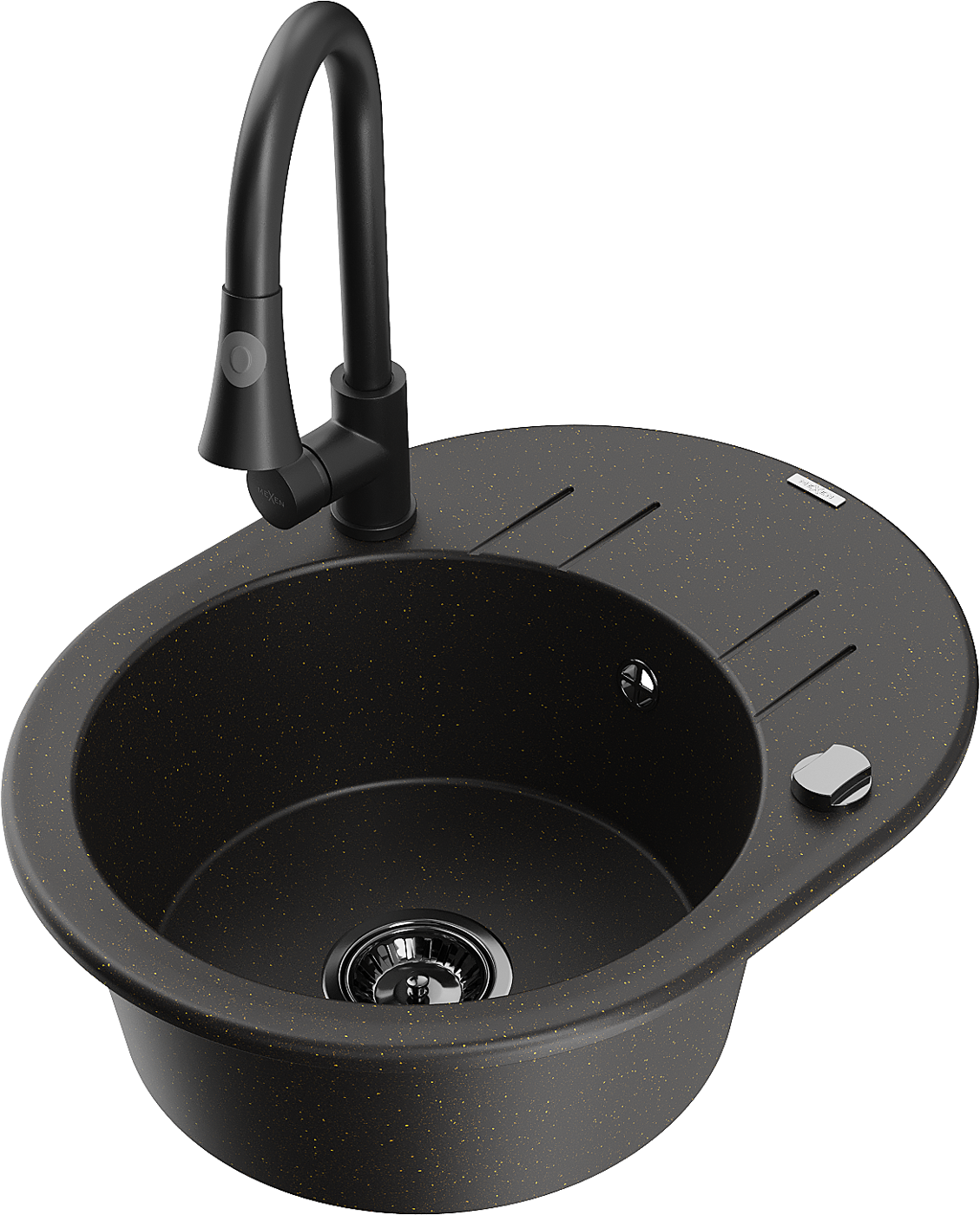 Mexen Kevin gránit mosogató 1-medencés csepegtetővel és konyhai csappal Elia, fekete/arany metál - 6517-75-670101-70-B