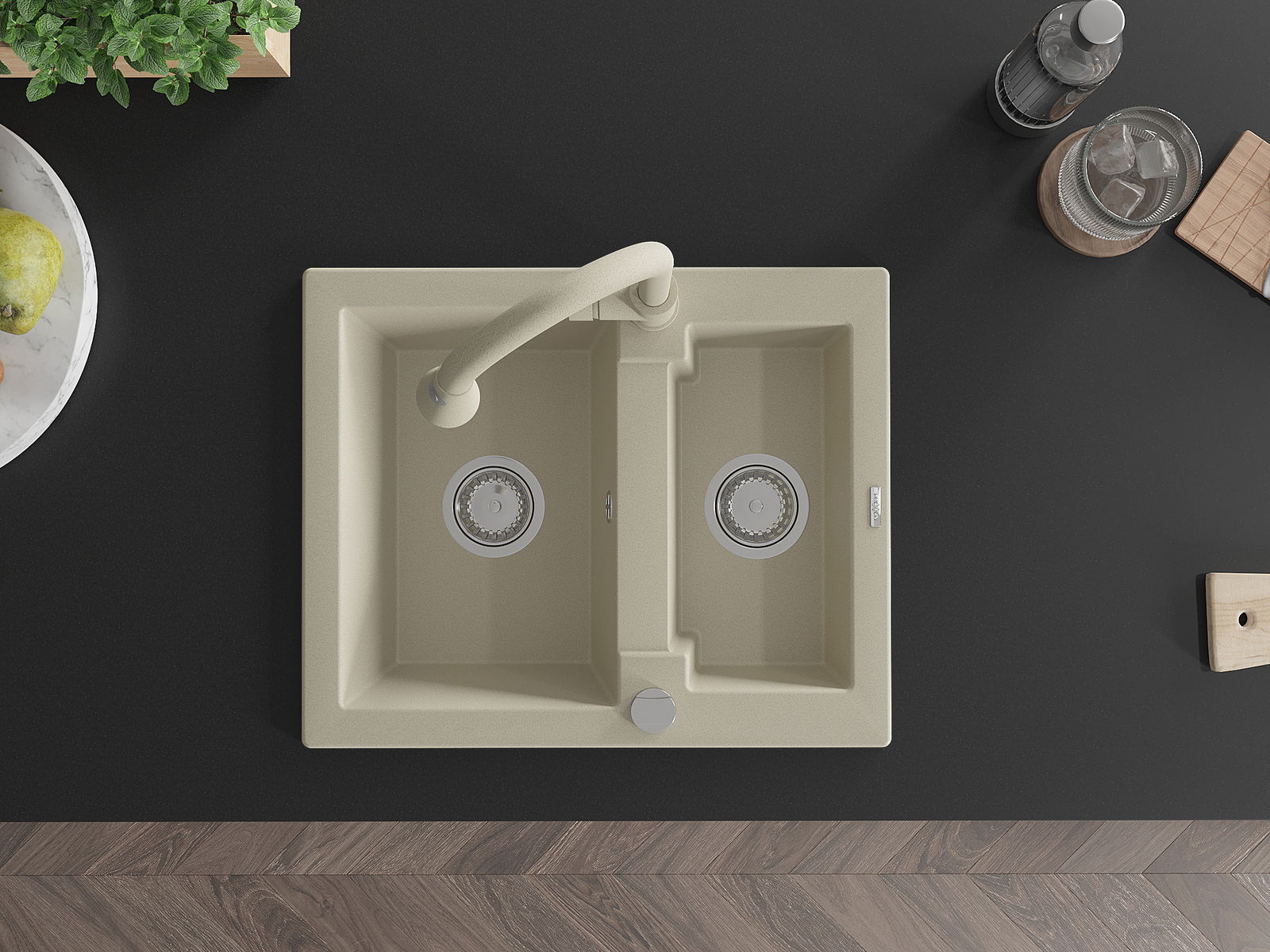 Mexen Carlos gránit mosogató 1,5-medencés Elia konyhai csappal, bézs - 6518-69-670101-69