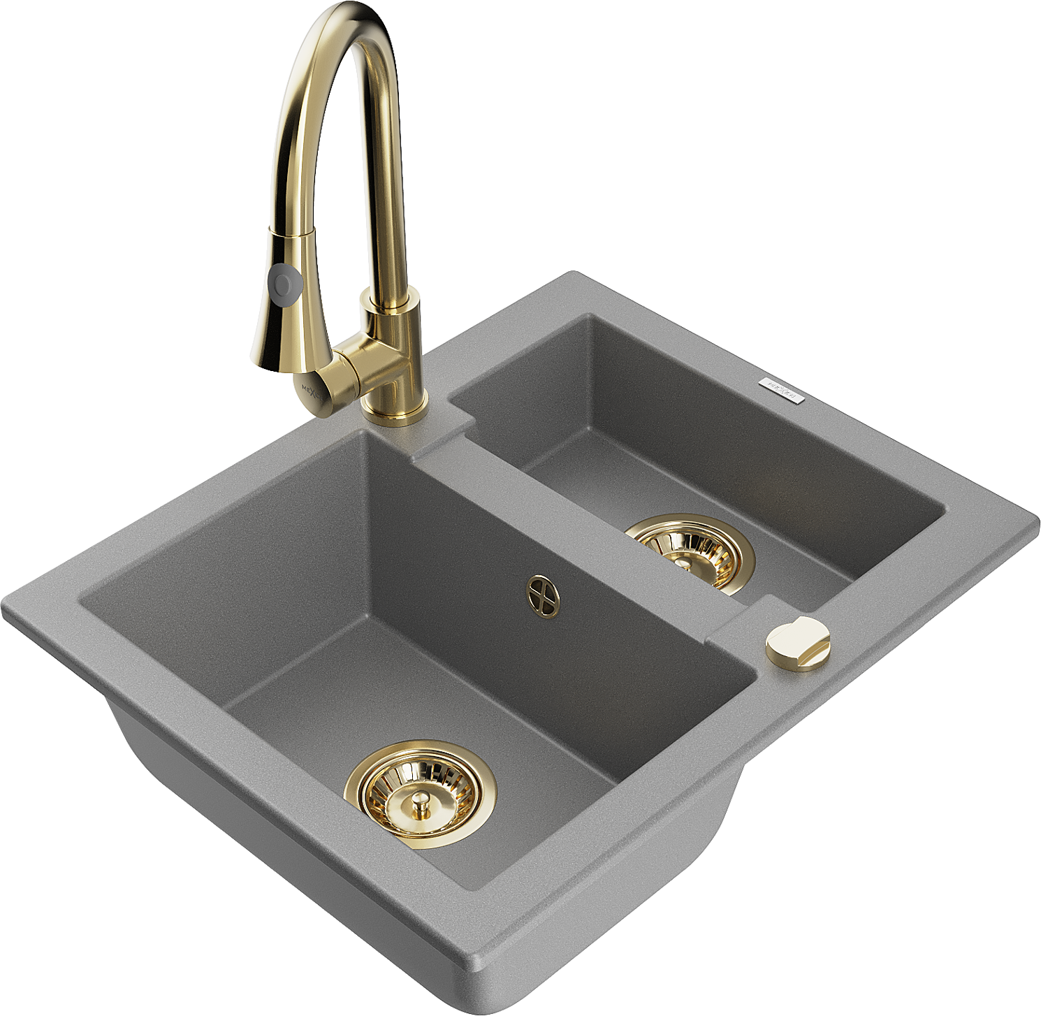 Mexen Carlos 1,5-medencés gránit mosogató Elia konyhai csappal, szürke - 6518-71-670101-50