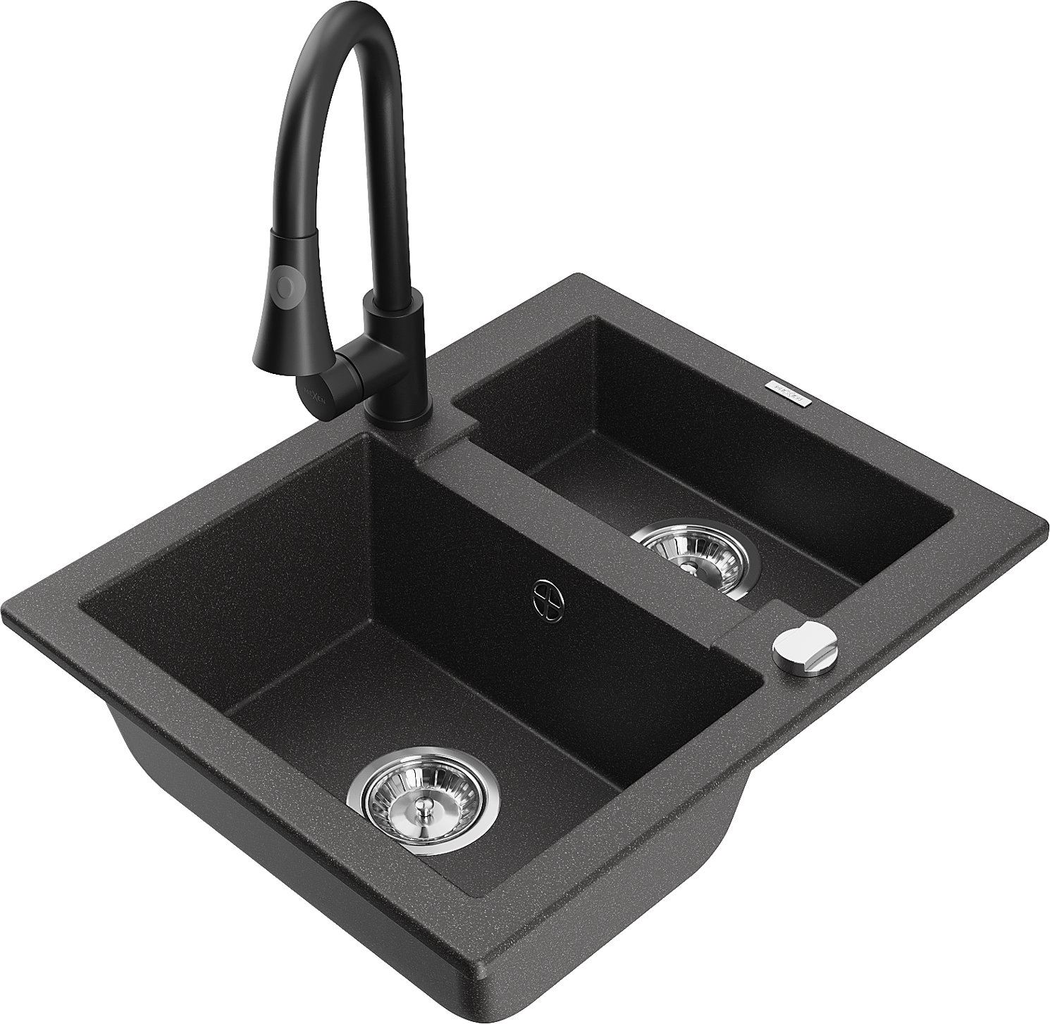 Mexen Carlos gránit mosogató 1,5 kamrás, Elia konyhai csapteleppel, fekete pöttyös - 6518-76-670101-70