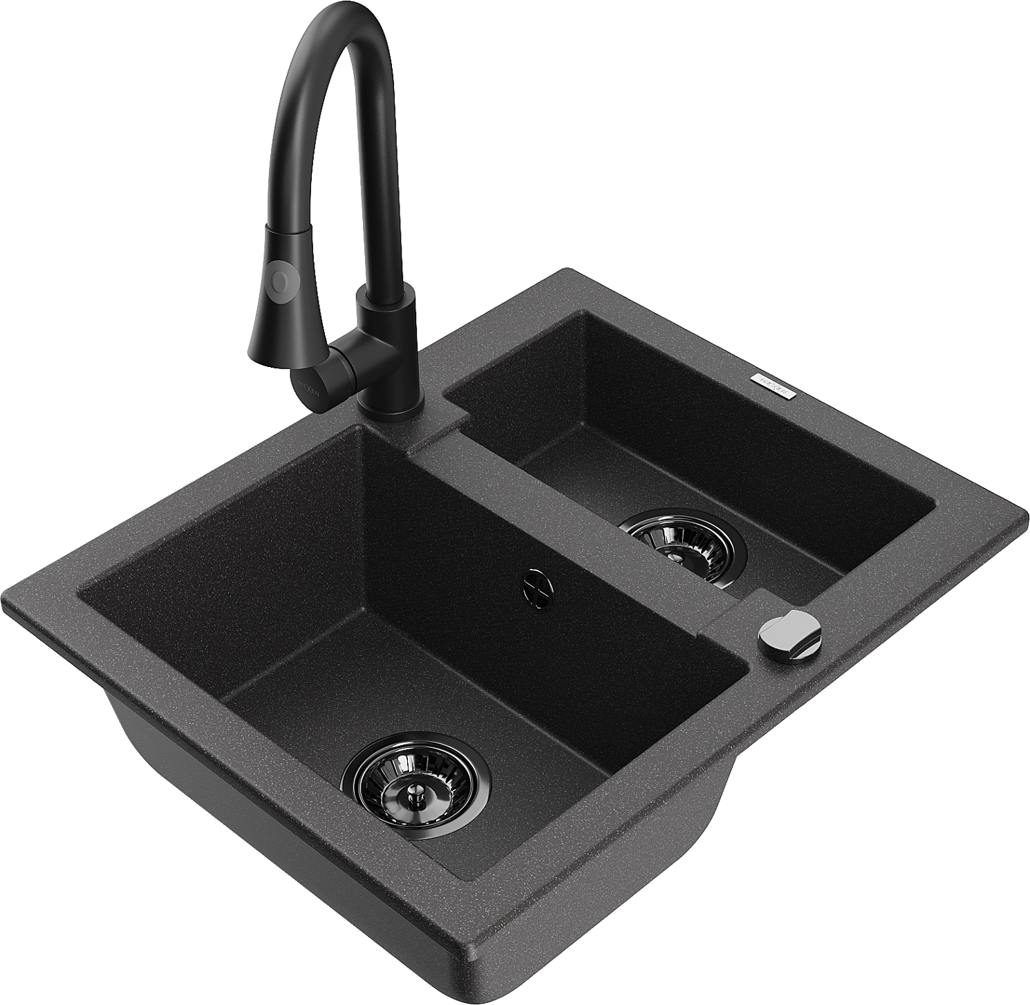 Mexen Carlos gránit mosogató 1,5-medencés Elia konyhai csapteleppel, fekete foltos - 6518-76-670101-70-B
