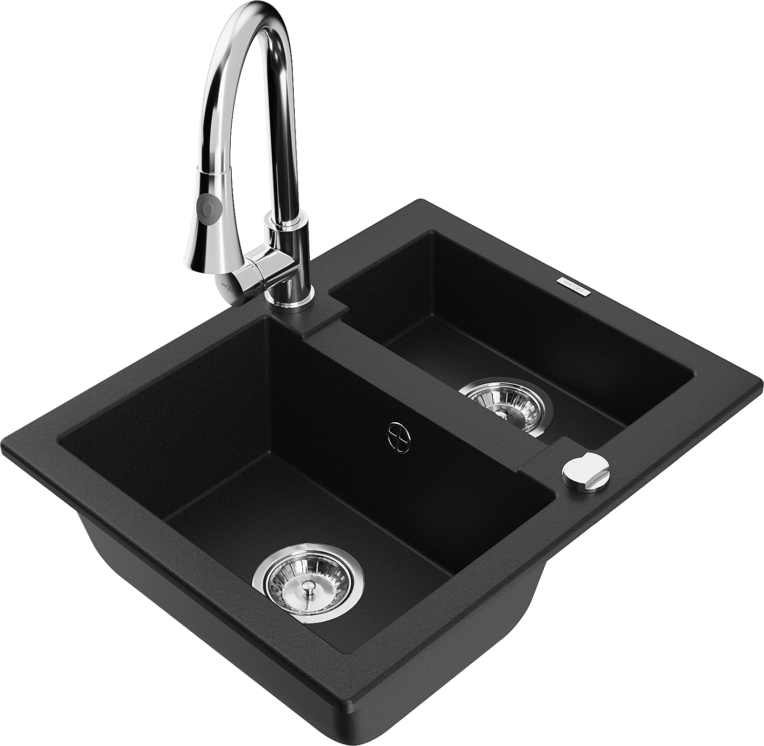 Mexen Carlos 1,5 medencés gránit mosogató Elia konyhai csapteleppel, fekete - 6518-77-670101-00