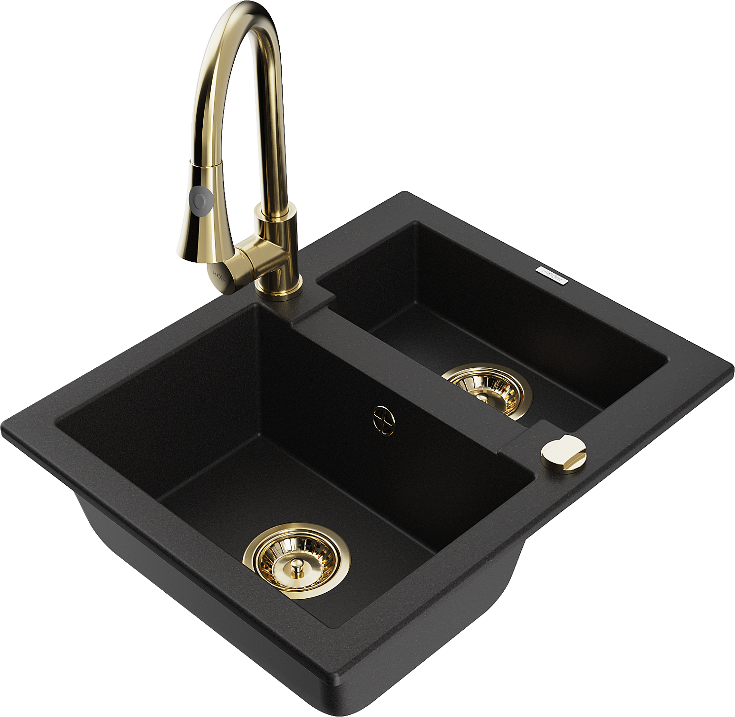 Mexen Carlos gránit mosogató 1,5 rekeszes, Elia konyhai csapteleppel, fekete - 6518-77-670101-50