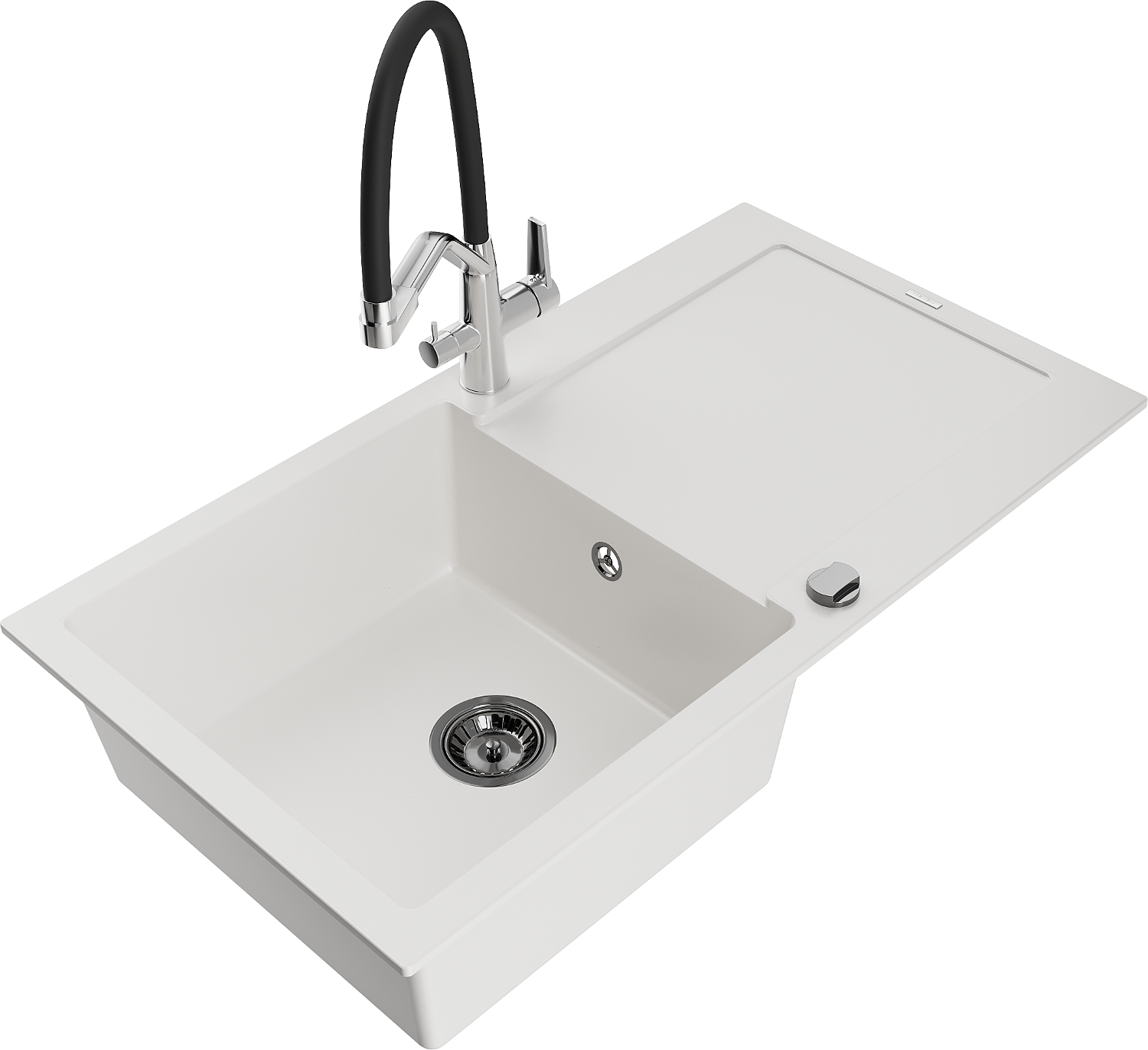 Mexen Leo gránit mosogató, 1 kamrás, csepegtetővel és Duo konyhai csapteleppel, fehér - 6501-20-671701-07-B