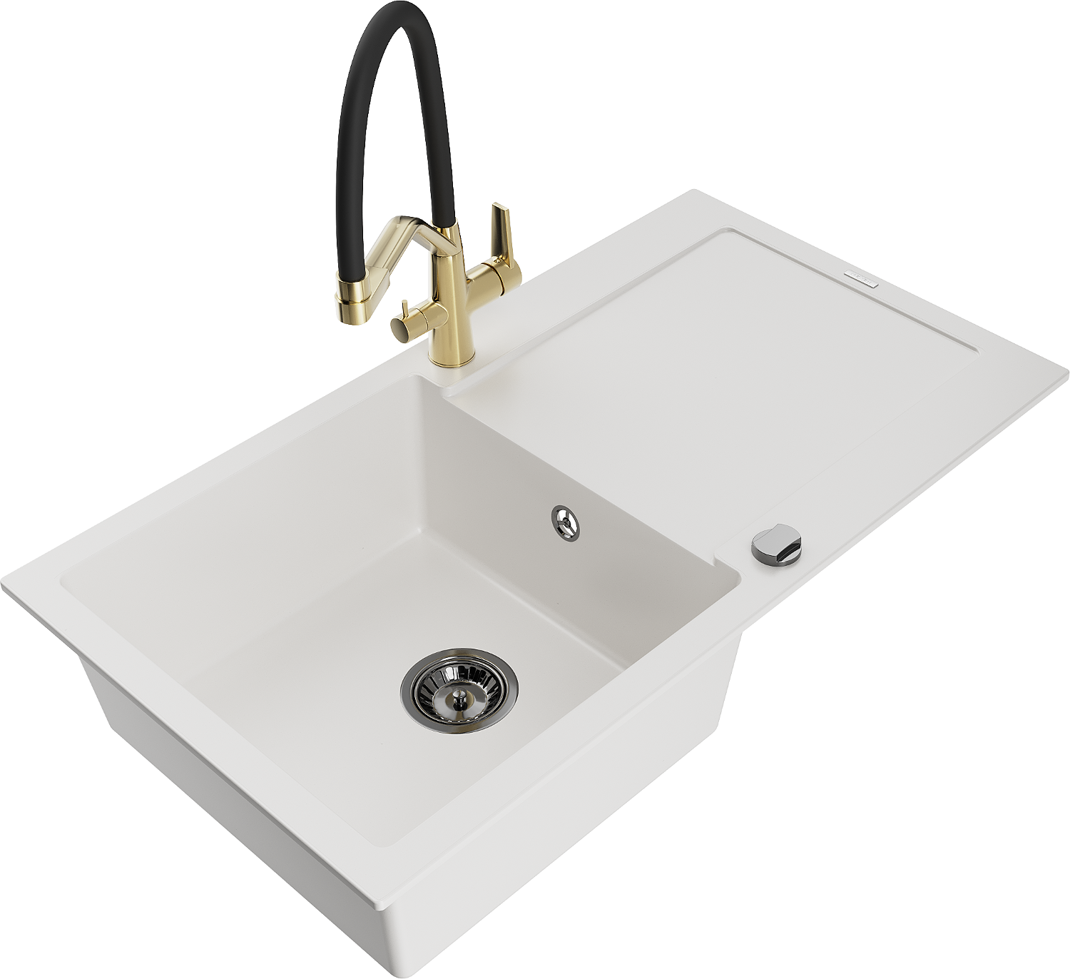 Mexen Leo 1 rekeszes gránit mosogató csepegtetővel és Duo konyhai csappal, fehér - 6501-20-671701-57-B