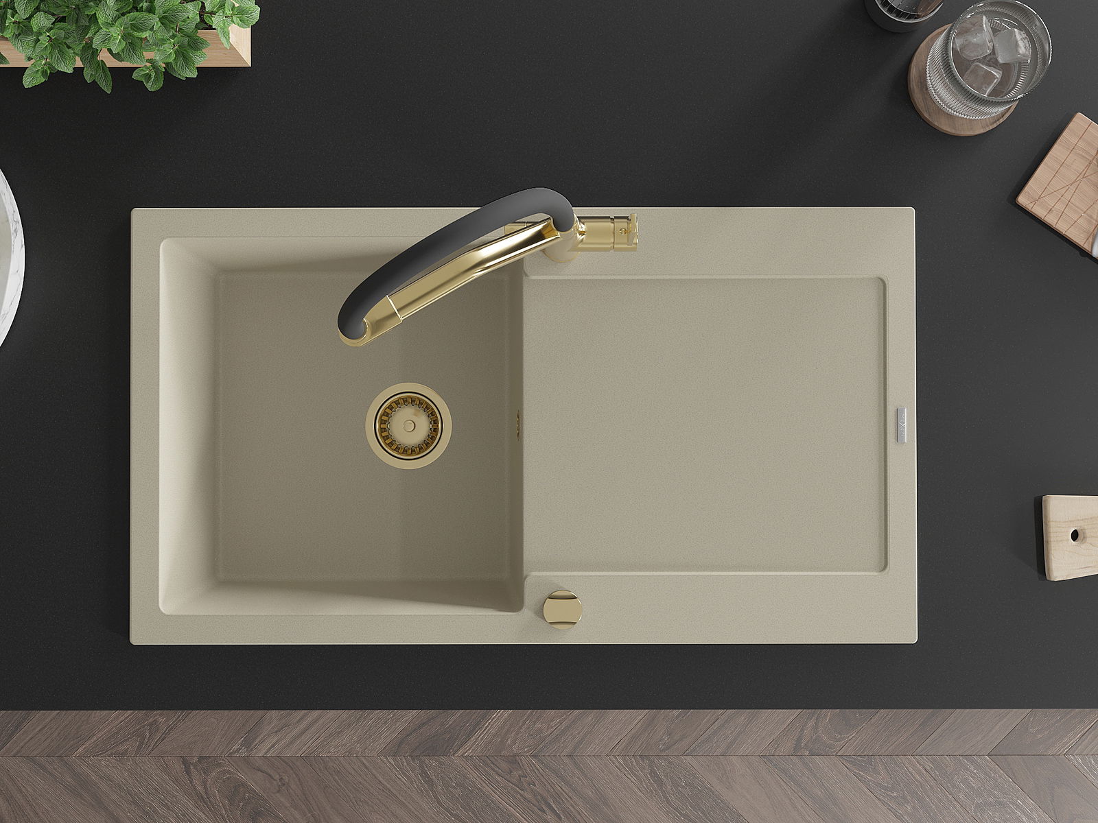 A mosogató magas minőségű gránitból készült. Elegáns, de mindenekelőtt praktikus kiegészítője minden konyhának, függetlenül annak stílusától. A gránit magas minősége és tartóssága hosszú távú használatot biztosít.