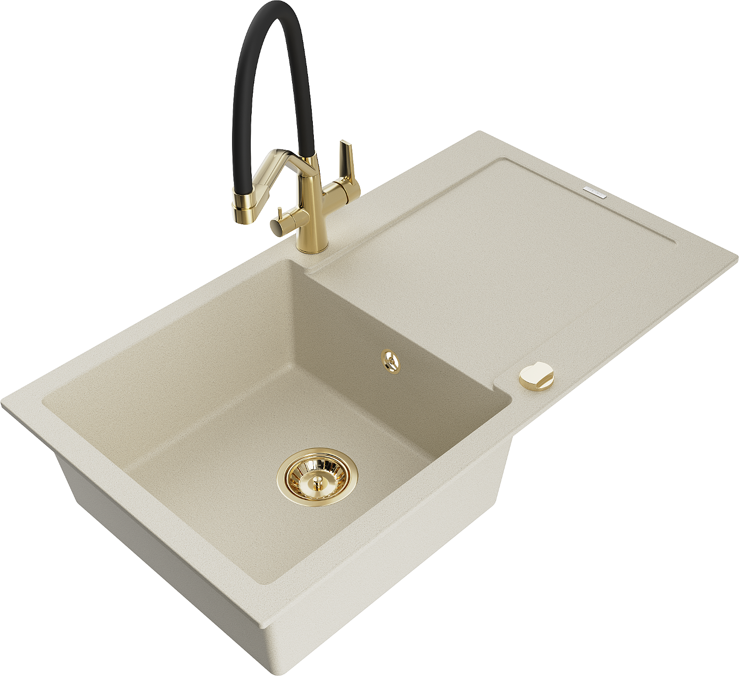 Mexen Leo egymedencés gránit mosogató csepegtetővel és Duo konyhai csapteleppel, bézs - 6501-69-671701-57-G