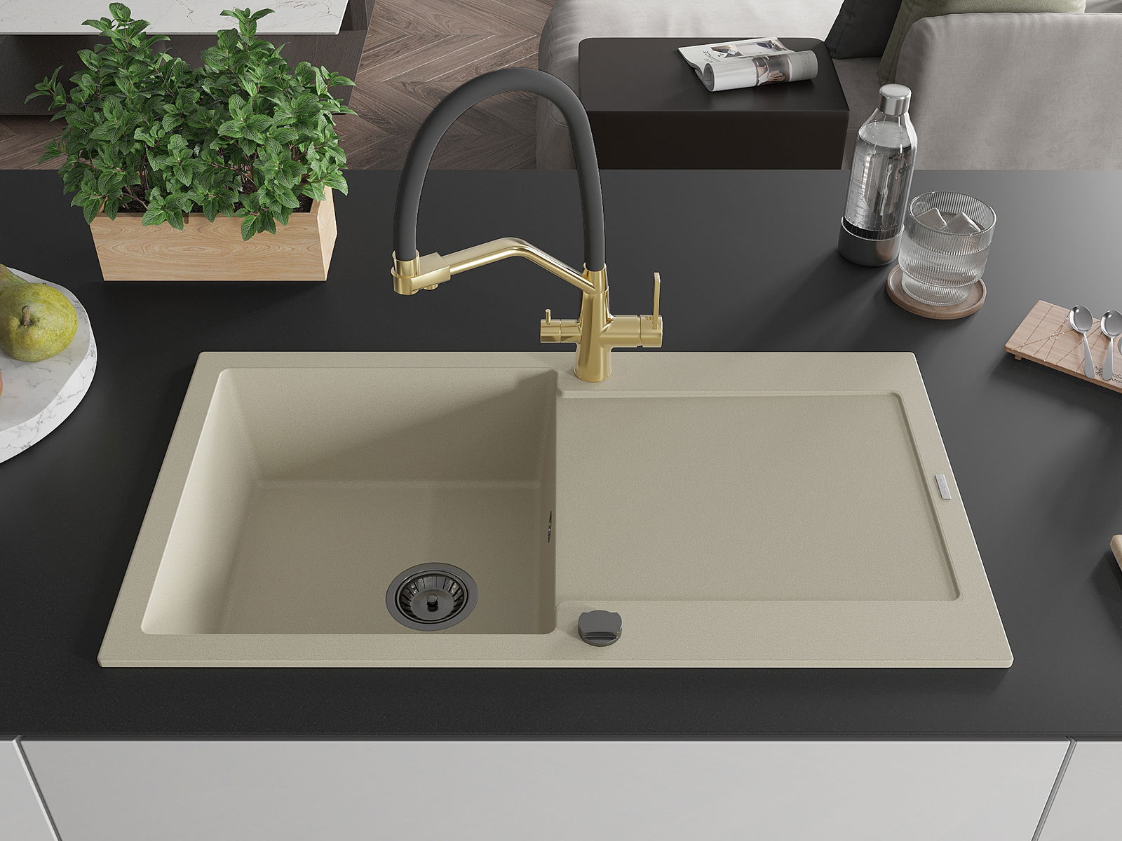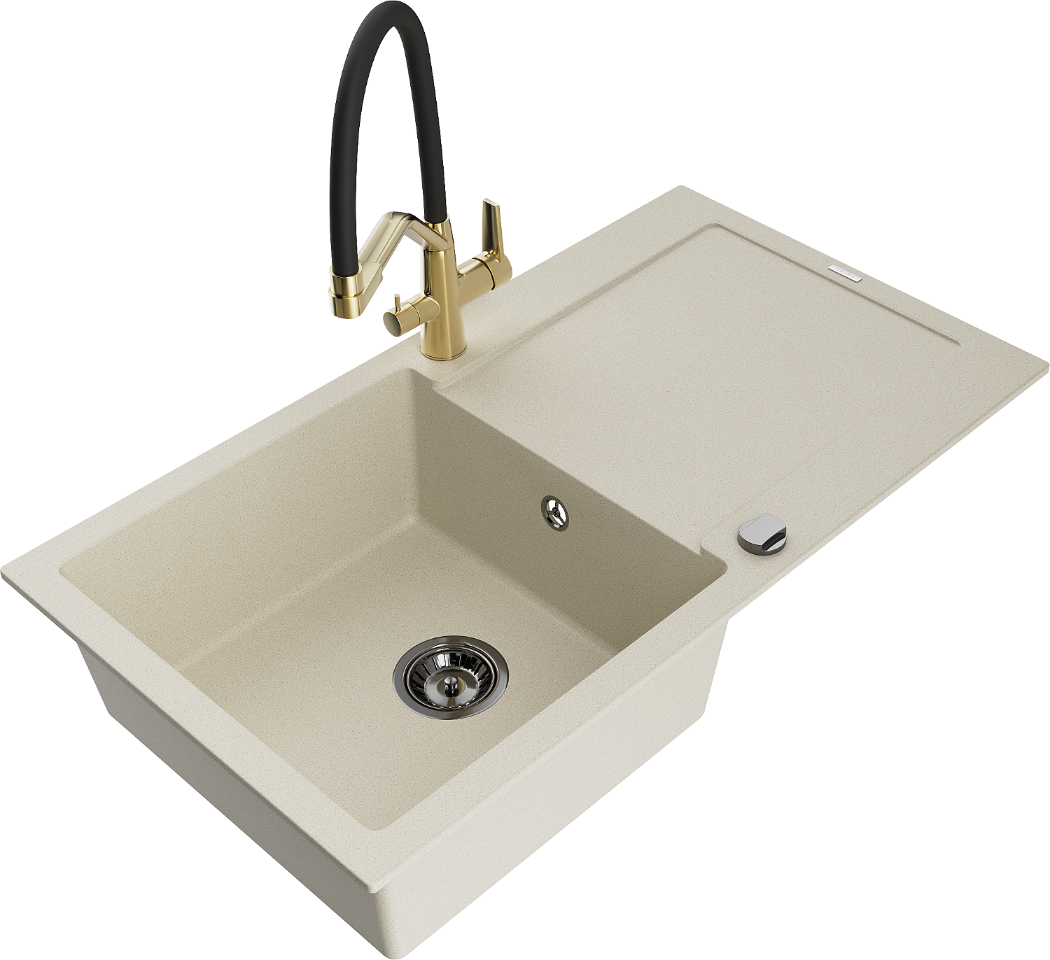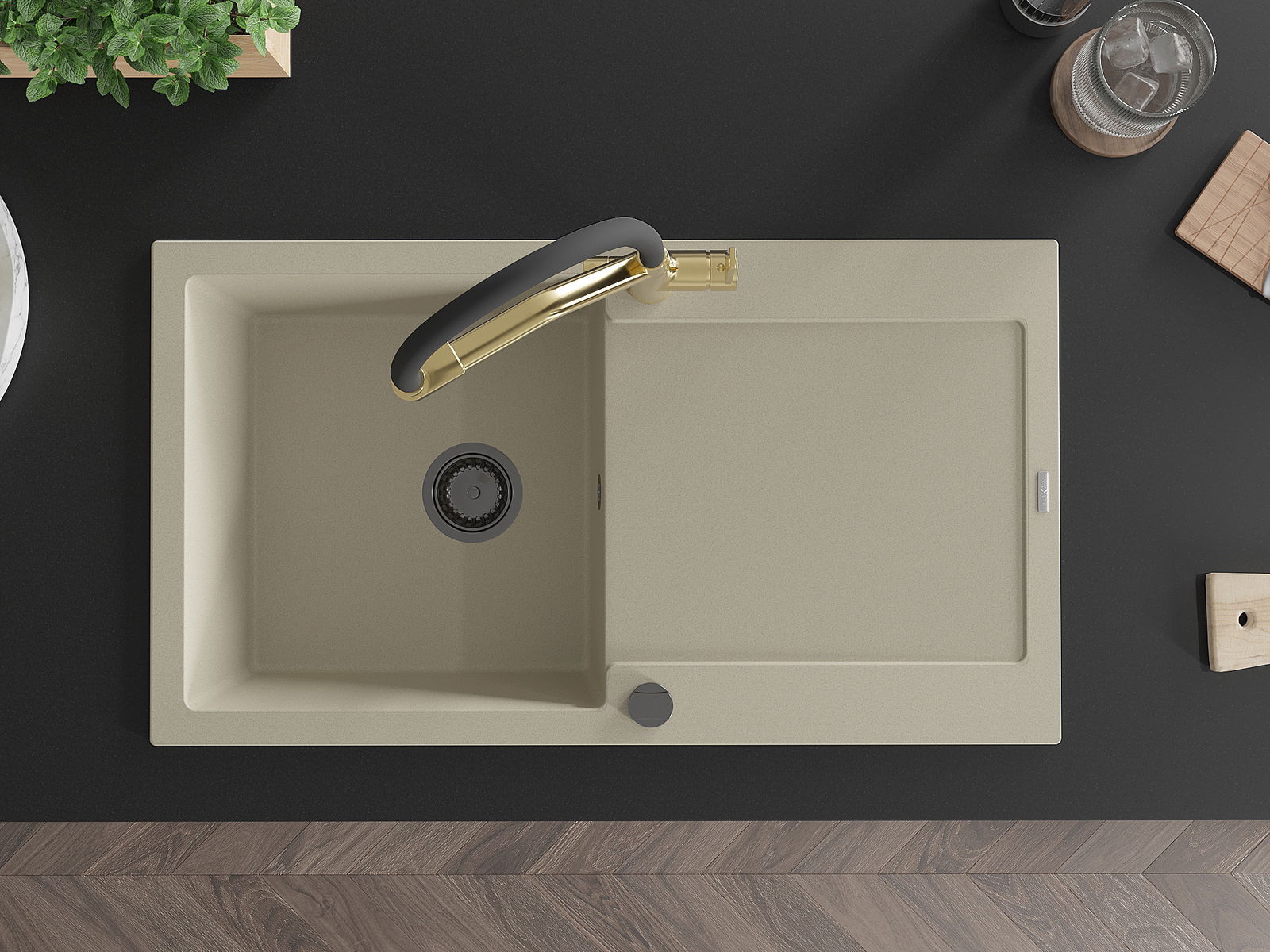 A mosogató magas minőségű gránitból készült. Elegáns, de mindenekelőtt praktikus kiegészítője minden konyhának, függetlenül annak stílusától. A gránit magas minősége és tartóssága hosszú távú használatot biztosít.