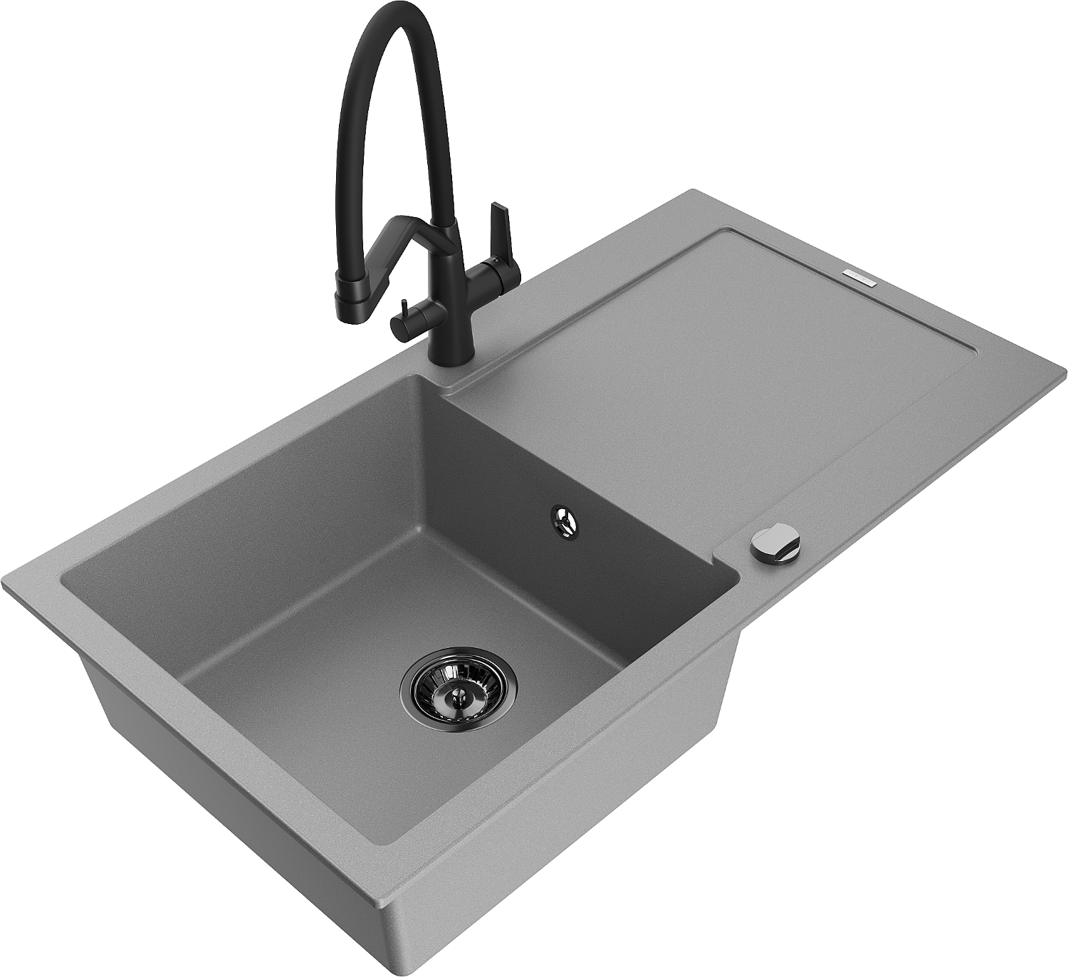 Mexen Leo 1 rekeszes gránit mosogatócsepegtetővel és Duo konyhai csapteleppel, szürke - 6501-71-671701-70-B