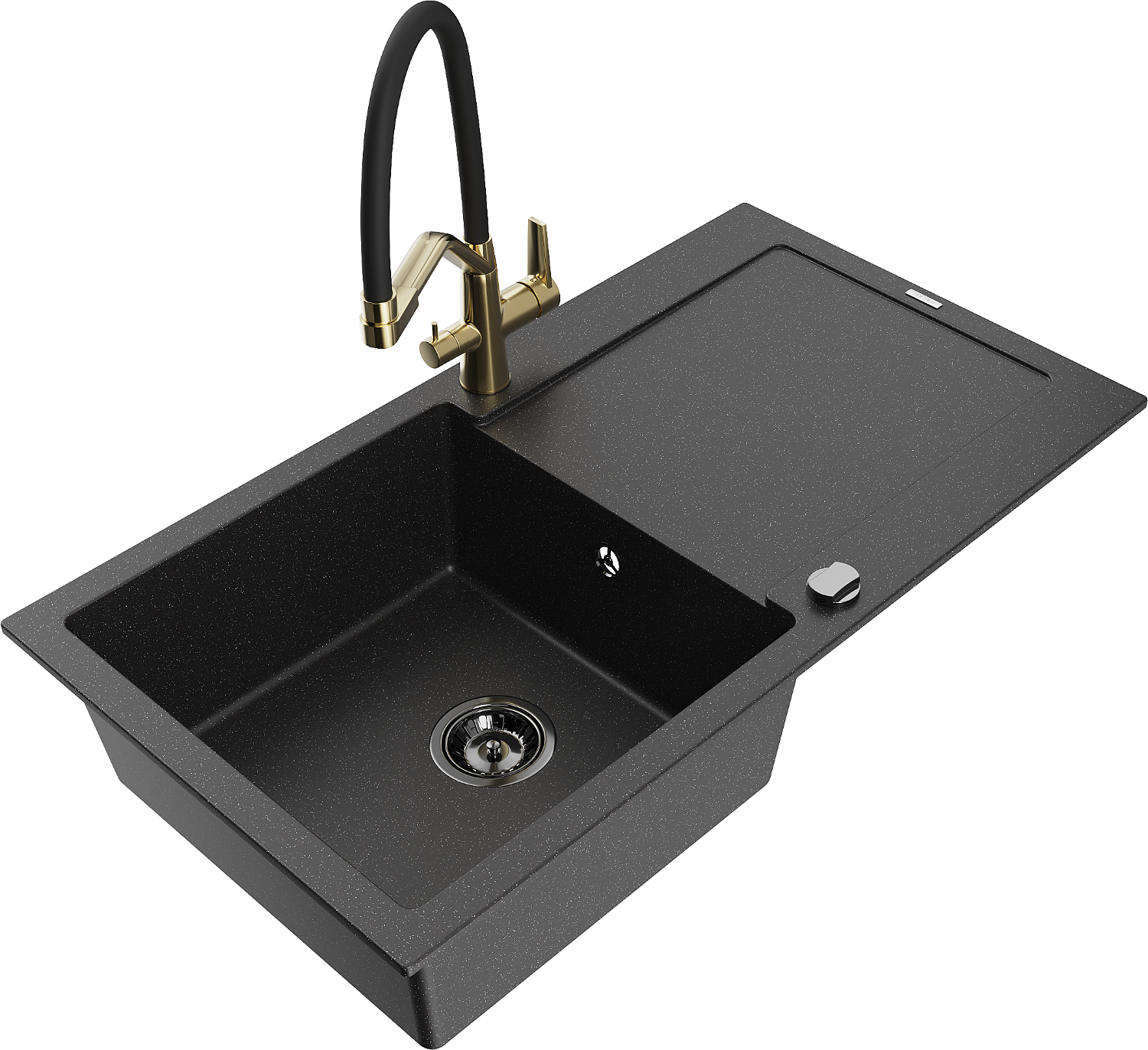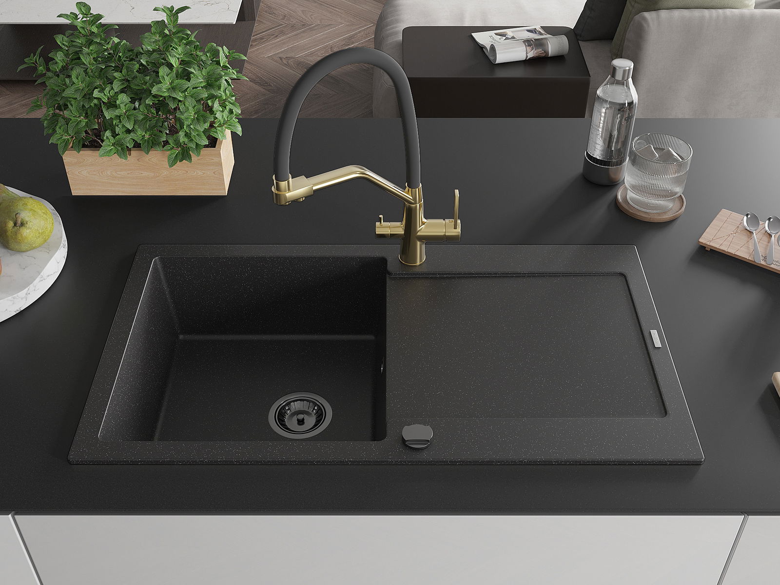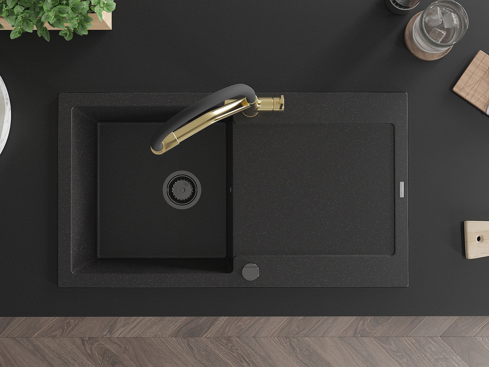 A mosogató magas minőségű gránitból készült. Elegáns, de mindenekelőtt praktikus kiegészítője minden konyhának, függetlenül annak stílusától. A gránit magas minősége és tartóssága hosszú távú használatot biztosít.
