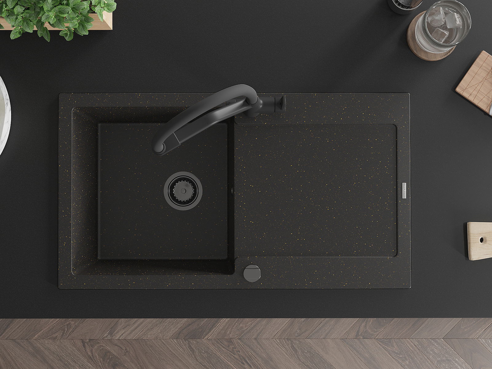 Mexen Leo 1-medencés gránit mosogatócsaptelep Duo-val, fekete/arany metál - 6501-75-671701-70-B