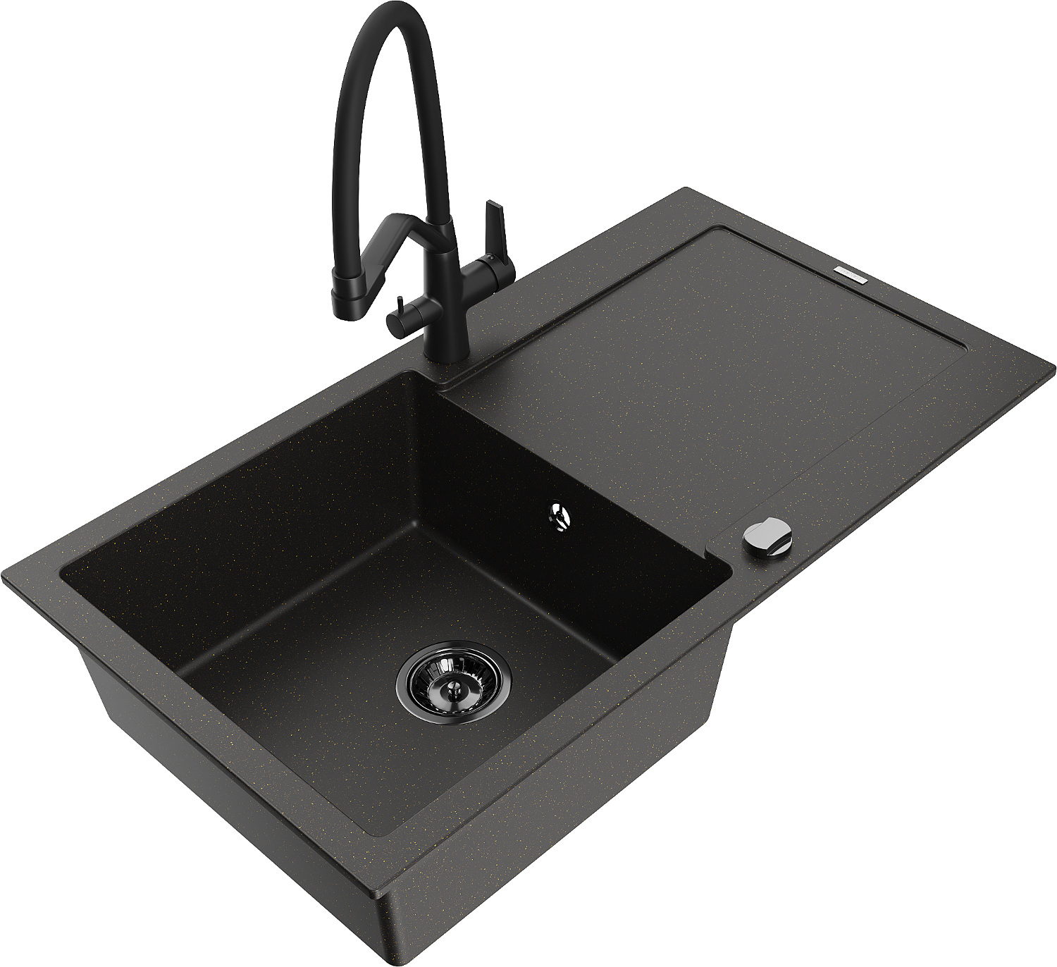 A mosogató magas minőségű gránitból készült. Elegáns, de mindenekelőtt praktikus kiegészítője minden konyhának, függetlenül annak stílusától. A gránit magas minősége és tartóssága hosszú távú használatot biztosít.