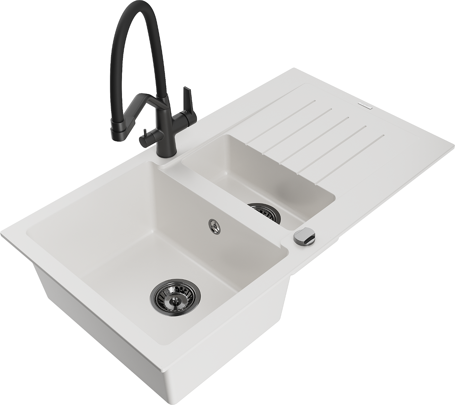 Mexen Matias 1,5 kamrás gránit mosogató csepptálcával és Duo konyhai csapteleppel, fehér - 6502-20-671701-70-B