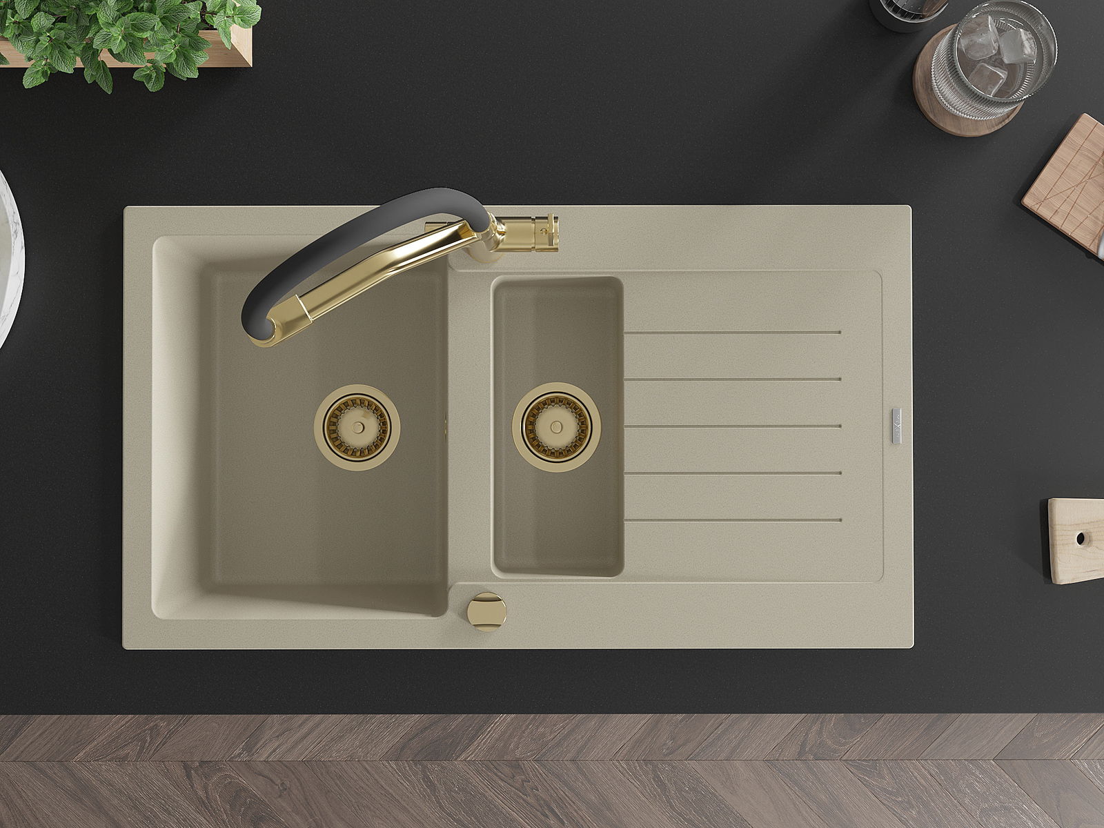 A mosogató kiváló minőségű gránitból készül. Ez egy elegáns és mindenekelőtt minden konyhához praktikus kiegészítés, stílusától függetlenül. A kiváló minőségű és a gránit tartósság biztosítja a sok éves használatát.
