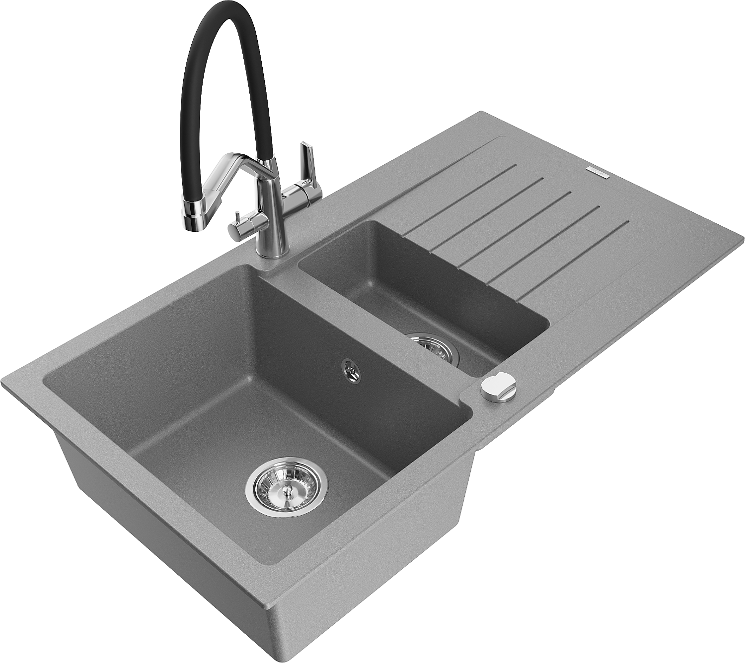 Mexen Matias gránit mosogató 1,5-medencés csepegtetővel és Duo konyhai csapteleppel, szürke - 6502-71-671701-07