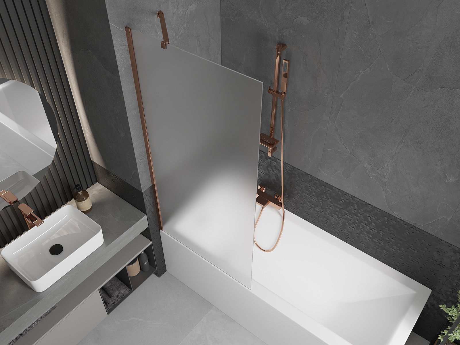 Mexen Next 1-szárnyú fürdőszobai válaszfal 80 x 150 cm, deres, rózsaarany - 895-080-000-00-30-60