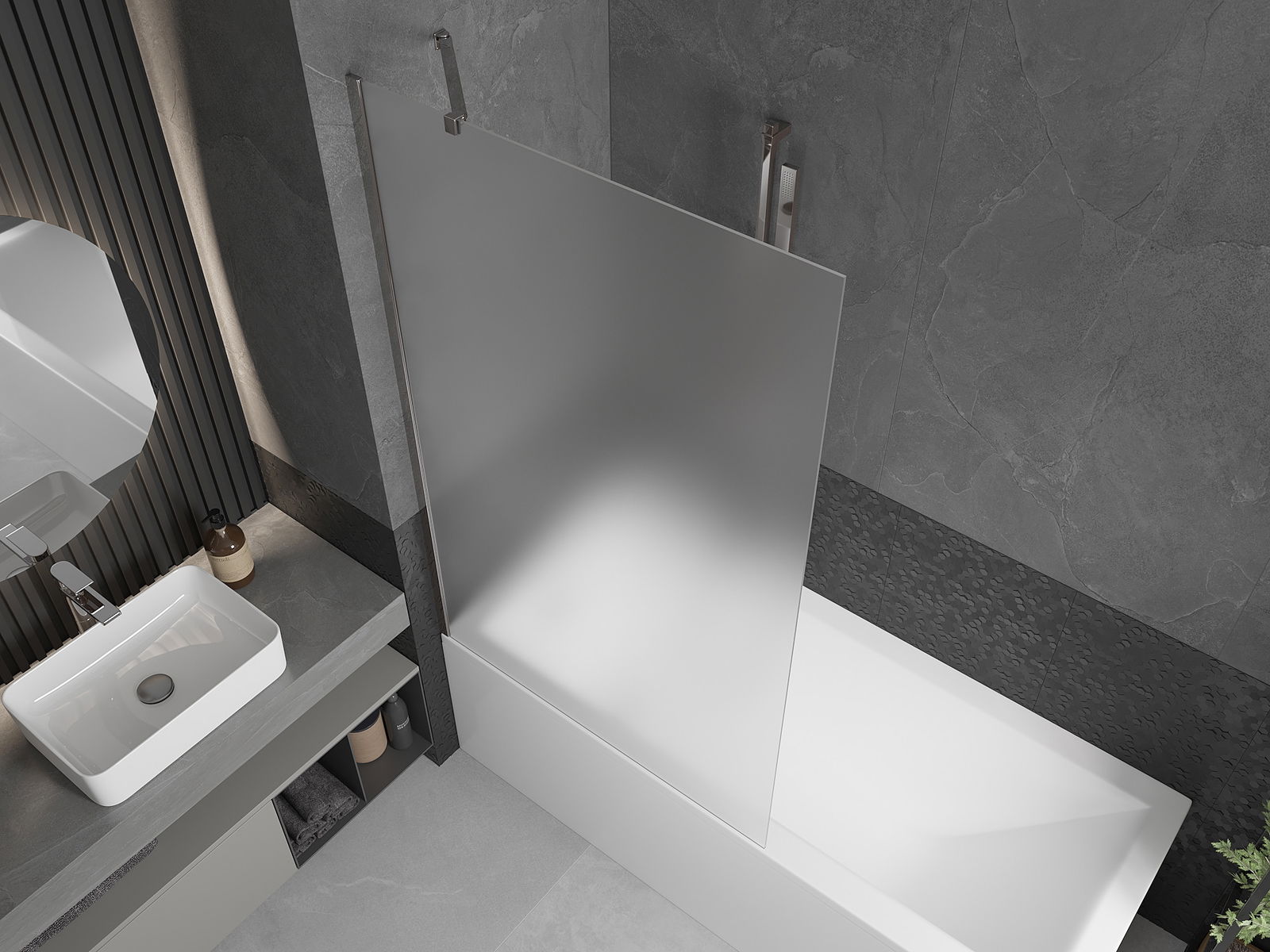 Az univerzális rögzítő rendszer használatával a képernyő jobbra vagy balra szerelhető, az Ön igényeitől függően. Ilyen módon könnyen megtervezheti a fürdőszobához szabott zuhanyt.