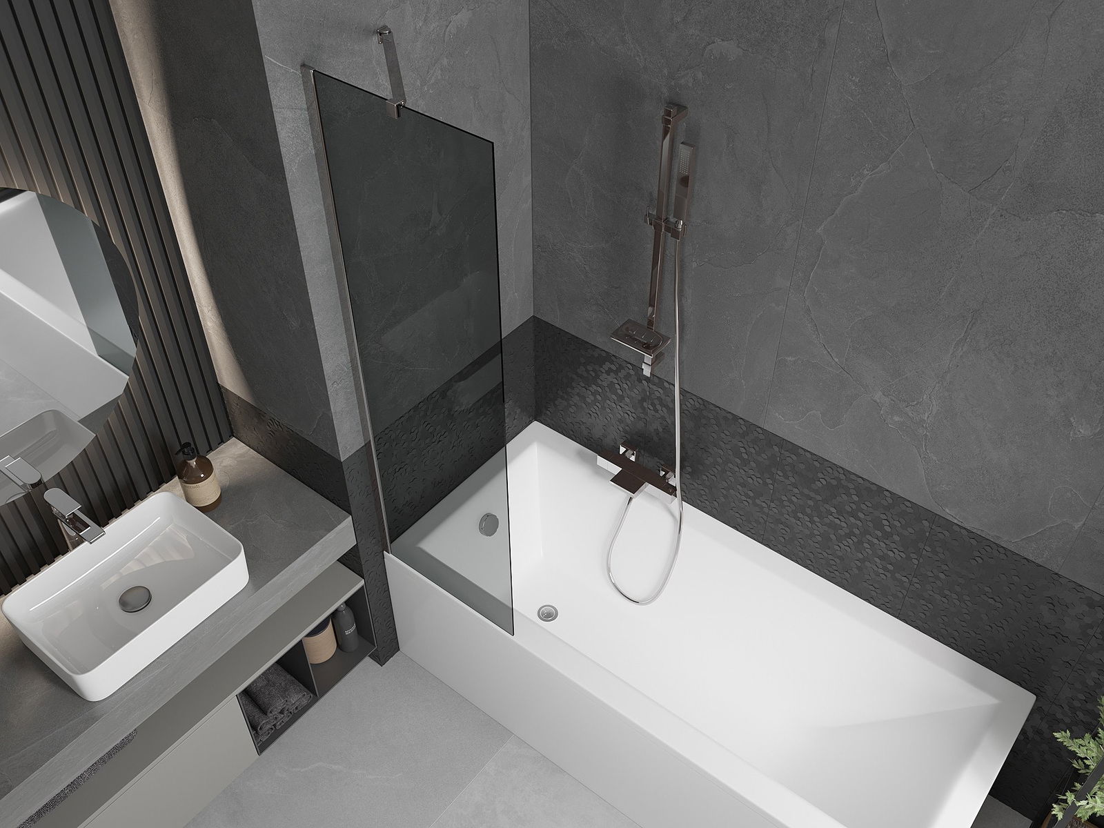Mexen Next 1-szárnyú fürdőszobai válaszfal 50 x 150 cm, grafit, króm - 895-050-000-00-40-01