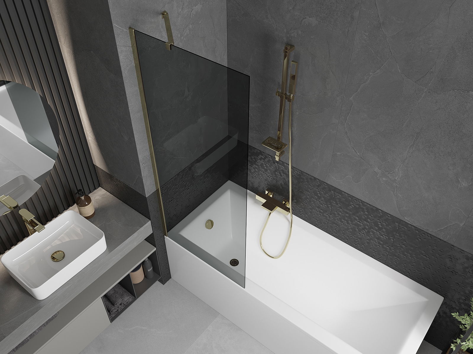 Mexen Next egyajtós fürdőkád paraván 70 x 150 cm, grafit, arany - 895-070-000-00-40-50