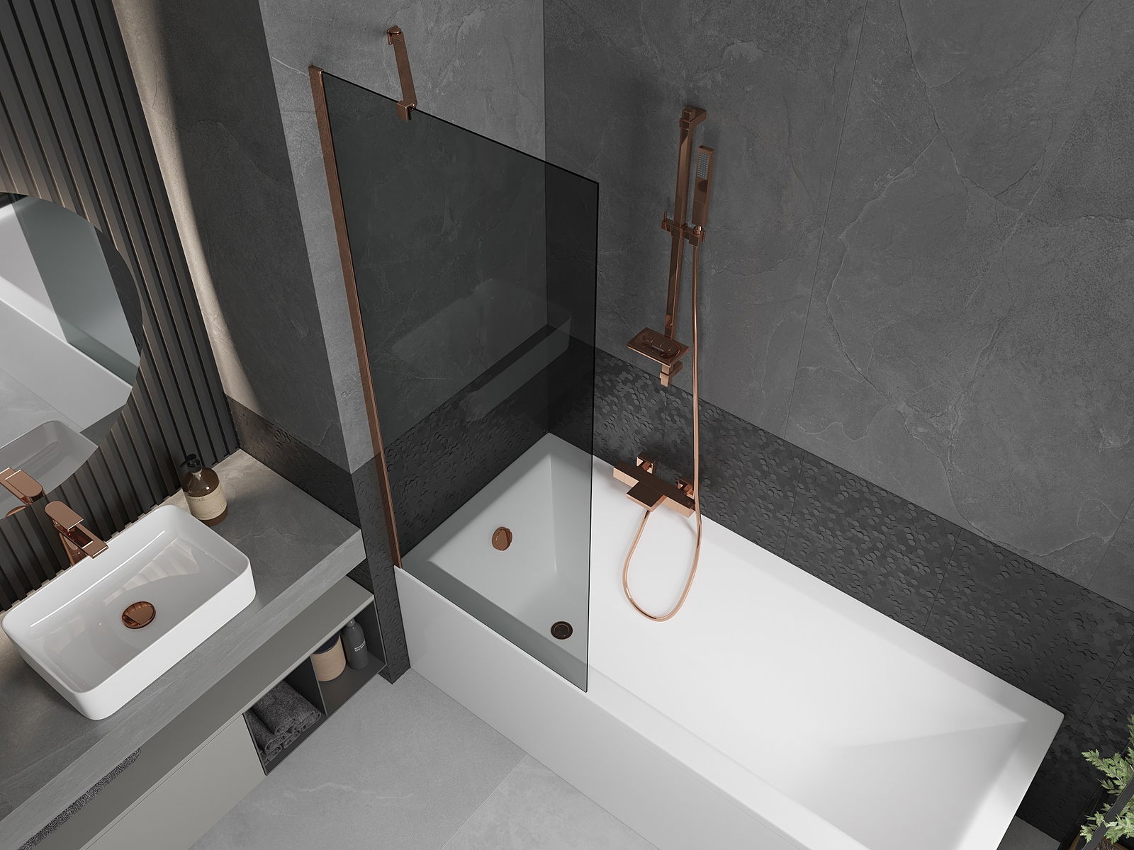 Mexen Next fürdőkád paraván 1-szárnyú 70 x 150 cm, grafit, rózsaarany - 895-070-000-00-40-60