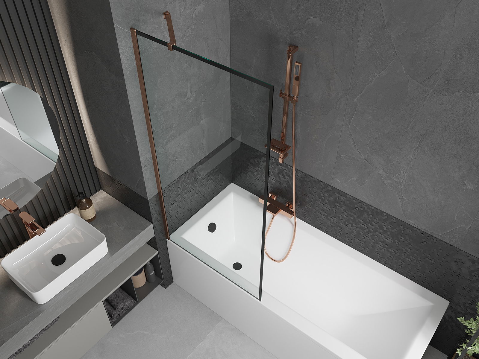 Mexen Next fürdőkád paraván 1-szárnyú 80 x 150 cm, fekete keret, rózsaarany - 895-080-000-00-70-60