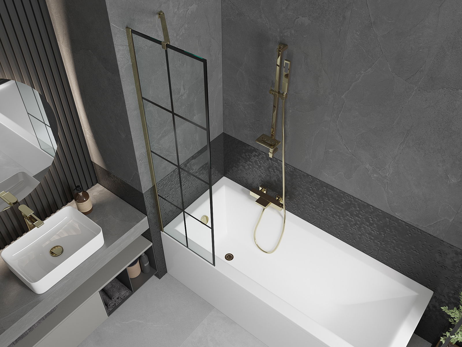 Mexen Next 1-szárnyú fürdőkádparaván 50 x 150 cm, fekete rácsos, arany - 895-050-000-00-77-50