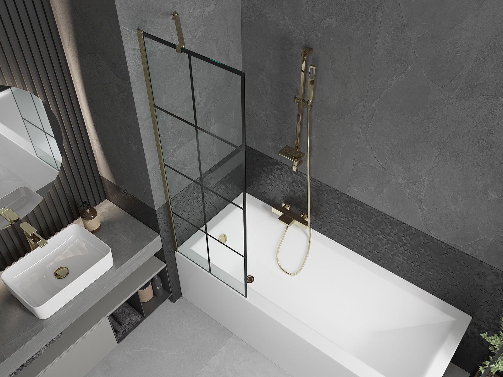 Mexen Next egyszárnyú kádparaván 60 x 150 cm, fekete rácsos, arany - 895-060-000-00-77-50