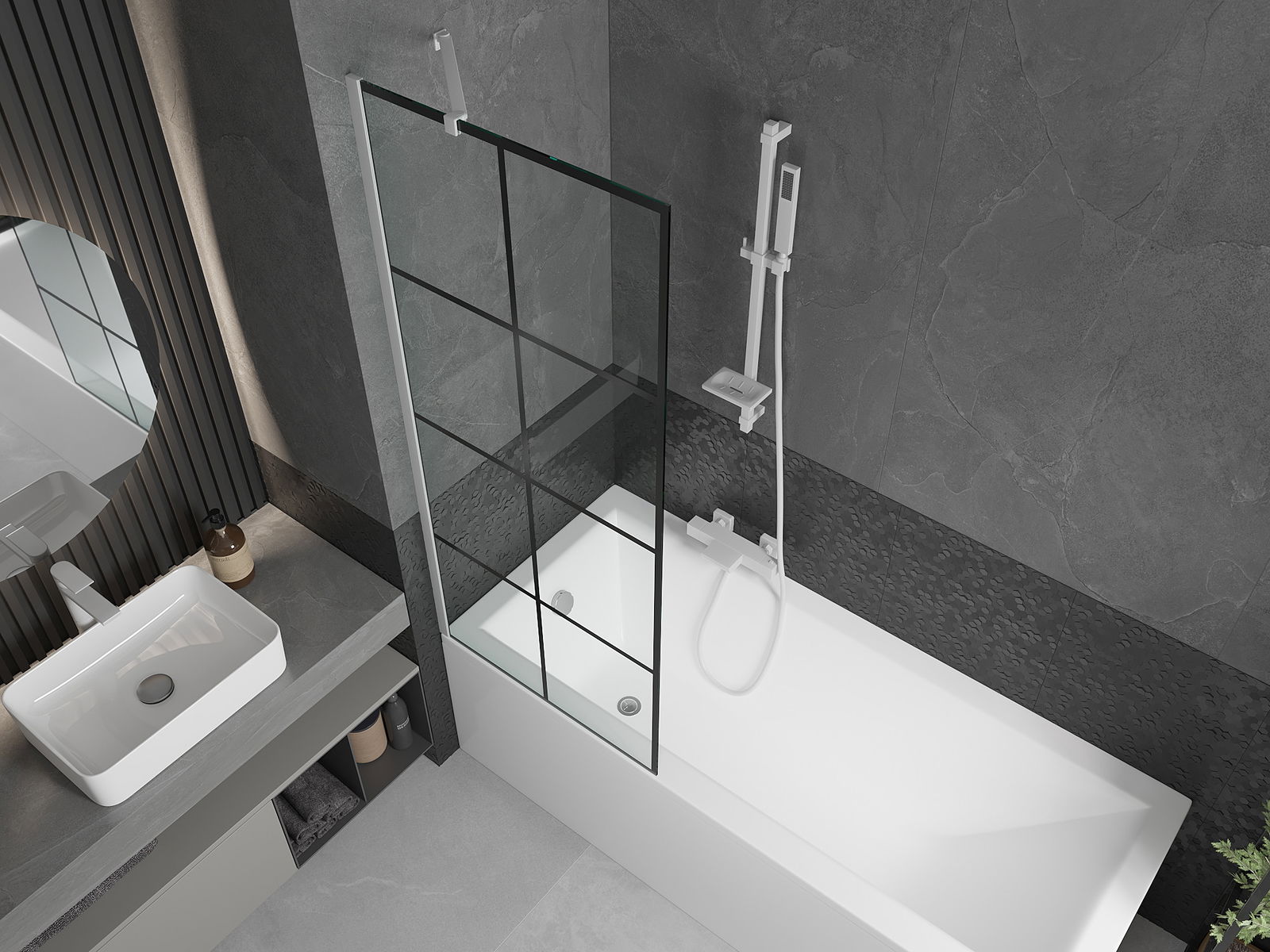 Mexen Next egyajtós fürdőkádparaván 70 x 150 cm, fekete rács, fehér - 895-070-000-00-77-20