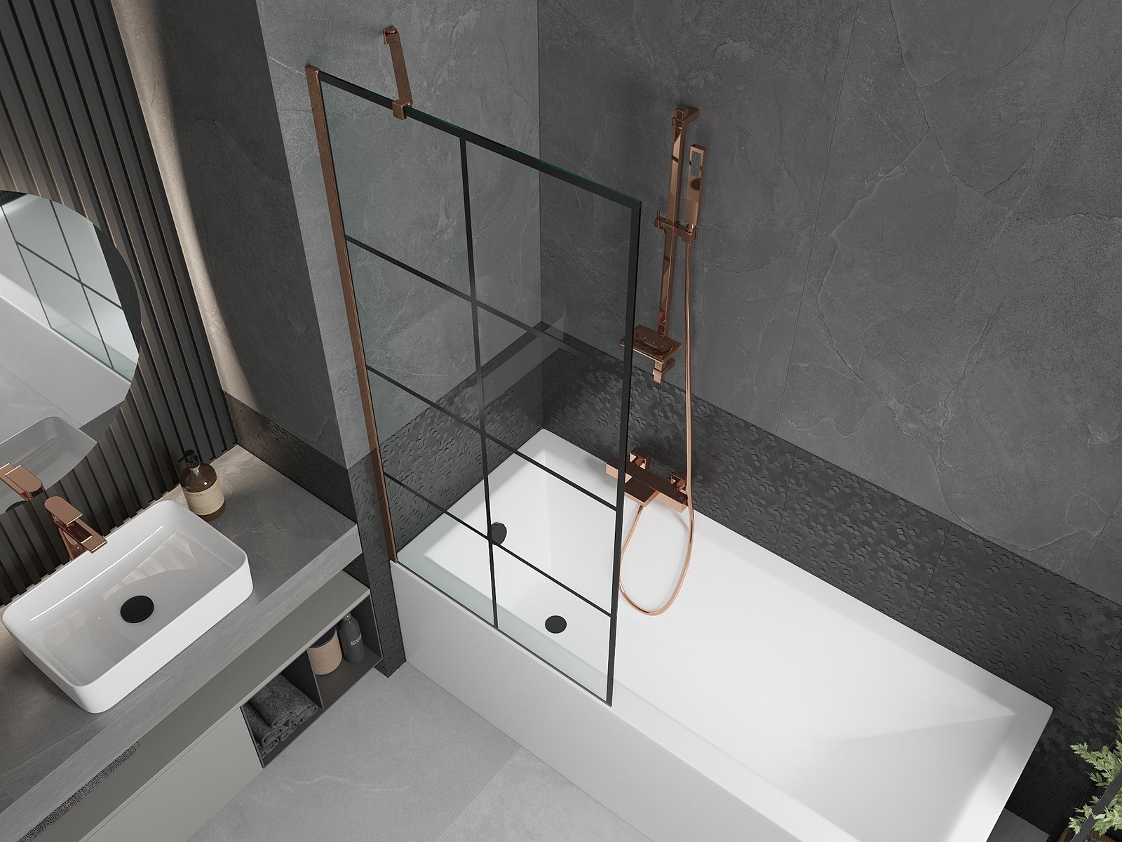 Mexen Next egyszárnyú kádparaván 80 x 150 cm, fekete rácsmintás, rózsaarany - 895-080-000-00-77-60