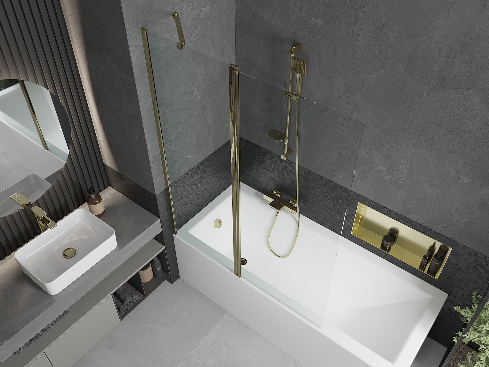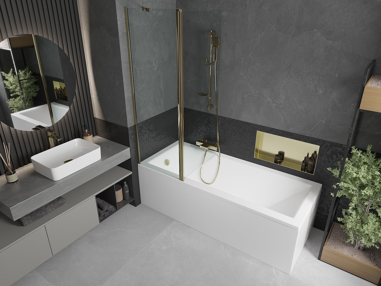 Mexen Flip 2-szárnyú fürdőkád paraván 120 x 150 cm, átlátszó, arany - 894-120-101-50-00