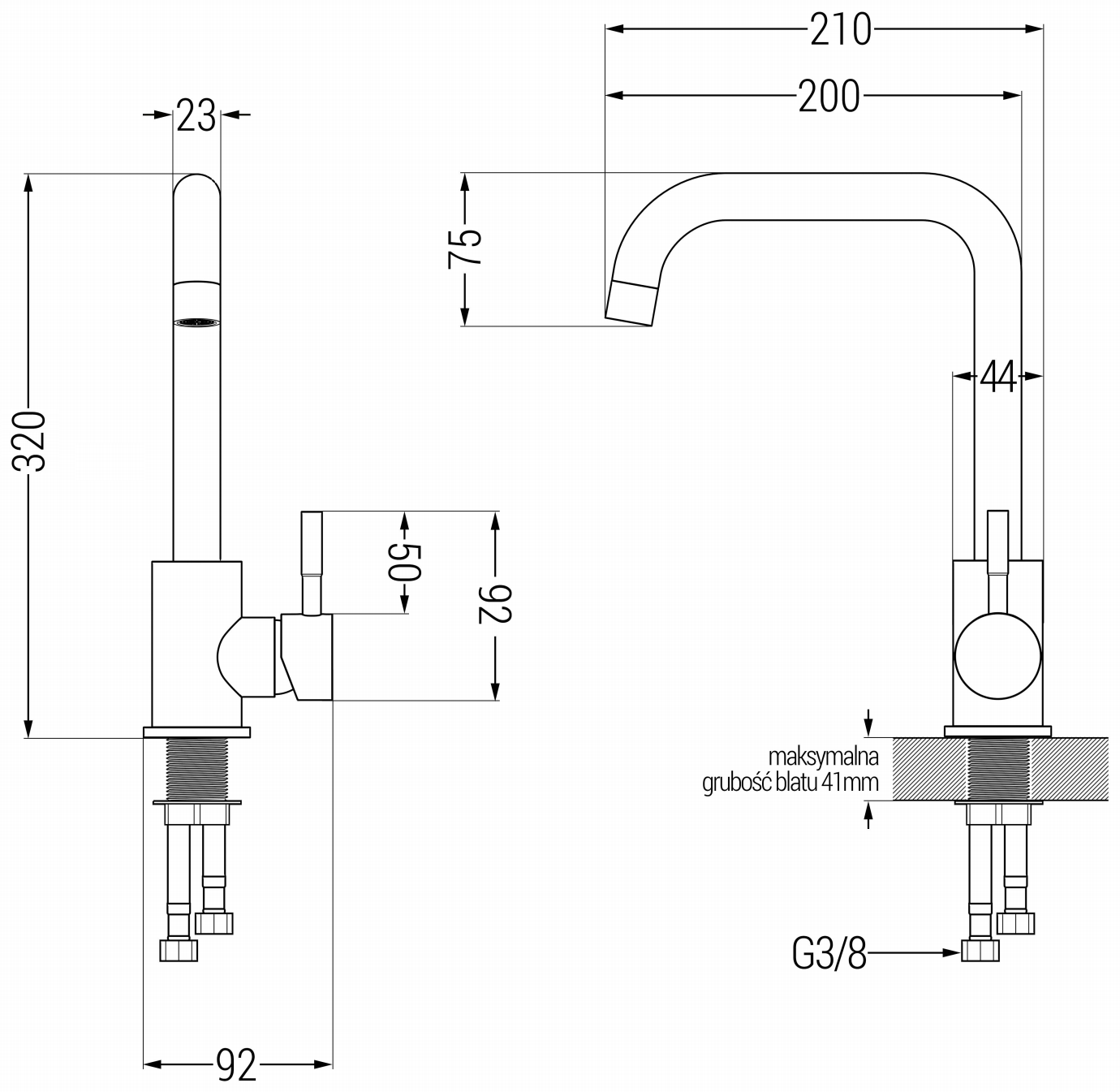 Kifolyó elérhetősége: 210 mm