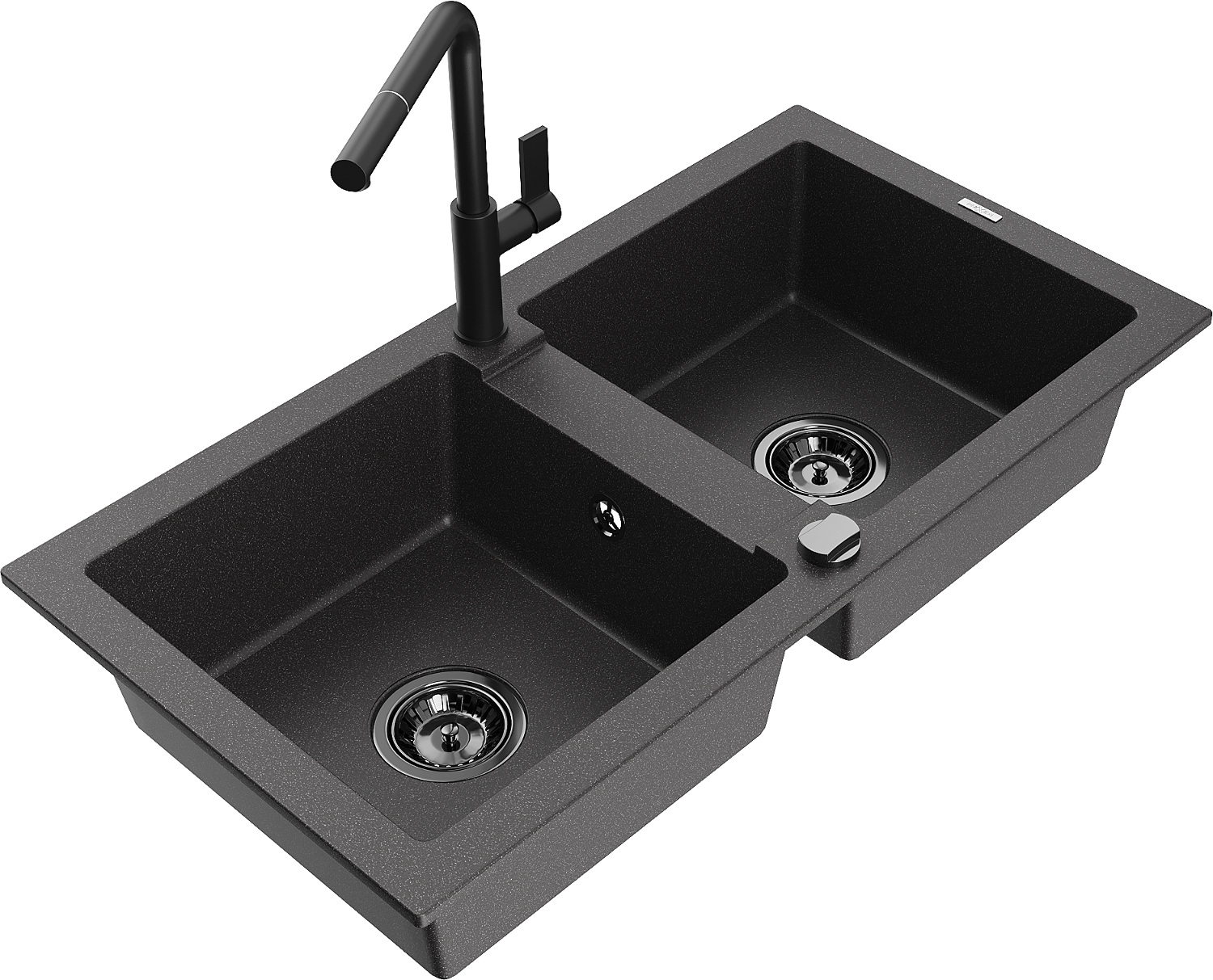 Mexen Mario gránit 2-medencés mosogató Flora konyhai csapteleppel, fekete, pöttyös - 6504-76-670401-70-B