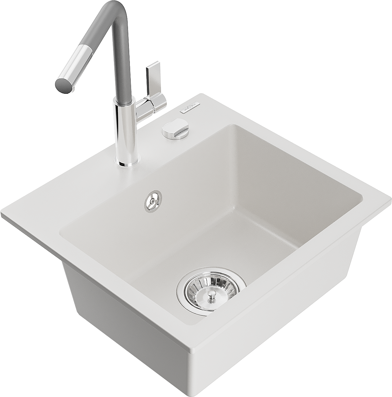 Mexen Milo gránit mosogató 1-medencés konyhai csapteleppel Flora, fehér - 6505-20-670401-06
