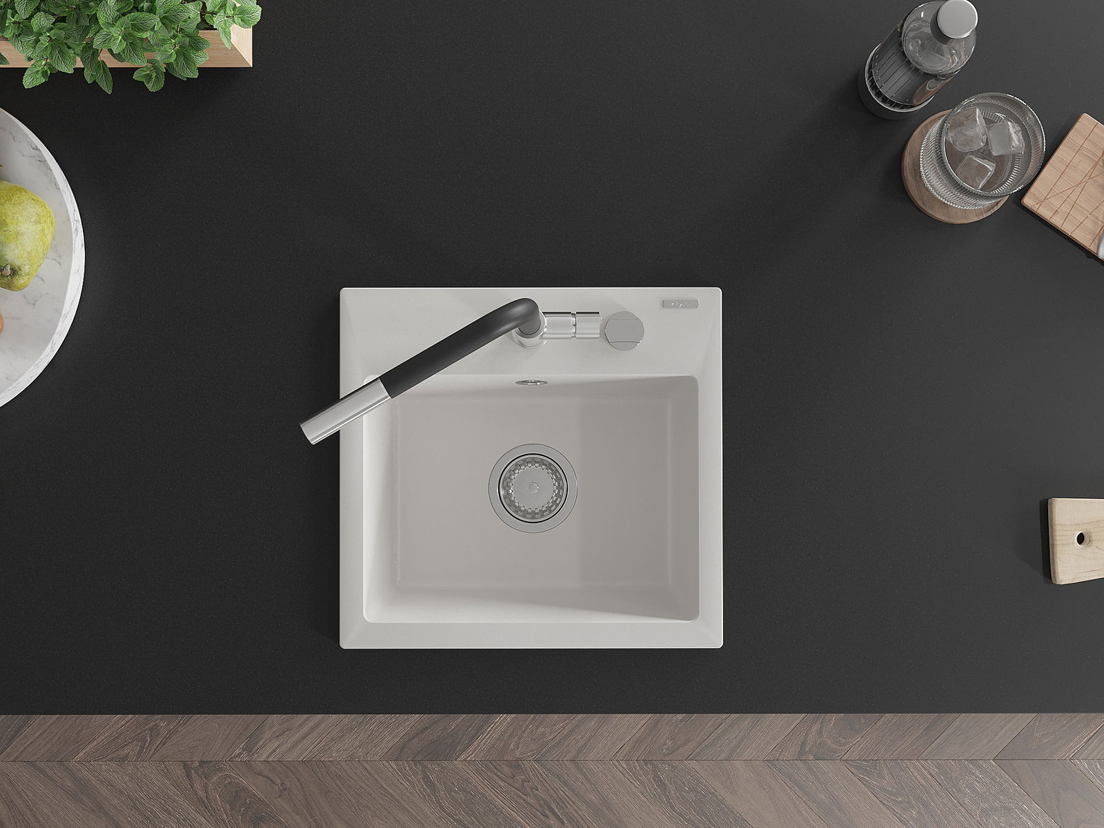 A mosogató magas minőségű gránitból készült. Elegáns, de mindenekelőtt praktikus kiegészítője minden konyhának, függetlenül annak stílusától. A gránit magas minősége és tartóssága hosszú távú használatot biztosít.