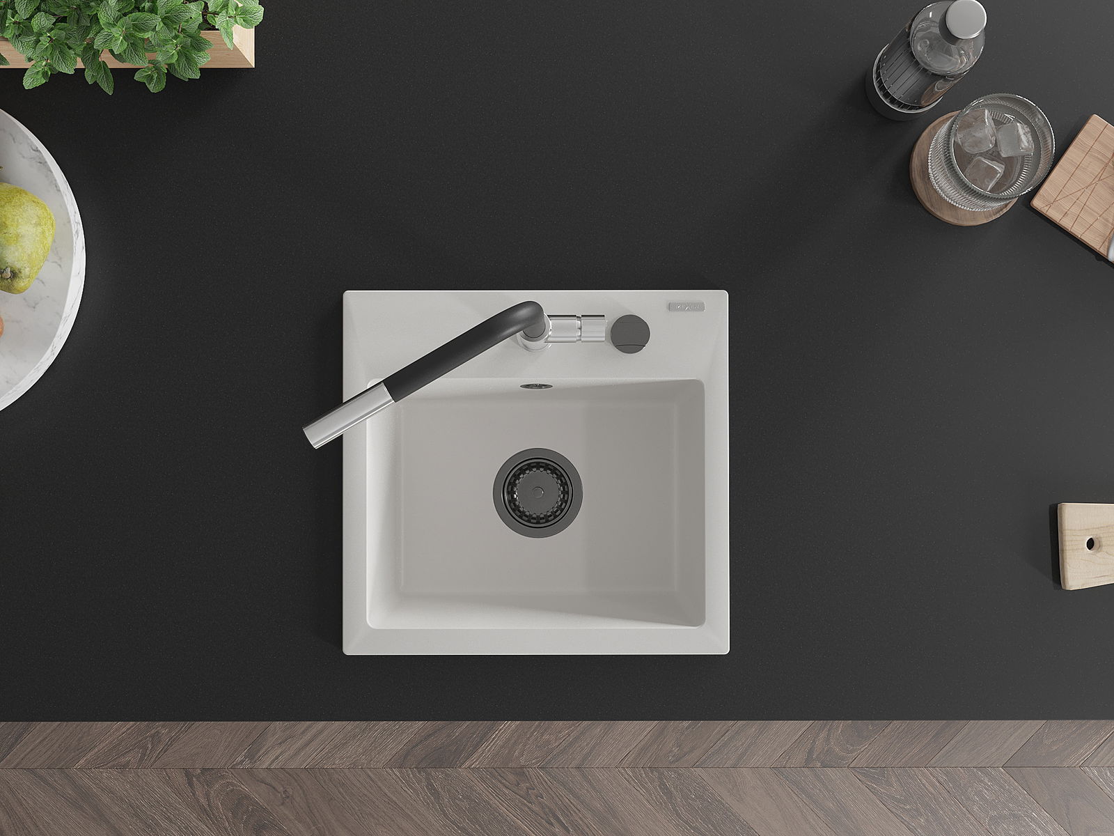 A mosogató kiváló minőségű gránitból készül. Ez egy elegáns és mindenekelőtt minden konyhához praktikus kiegészítés, stílusától függetlenül. A kiváló minőségű és a gránit tartósság biztosítja a sok éves használatát.