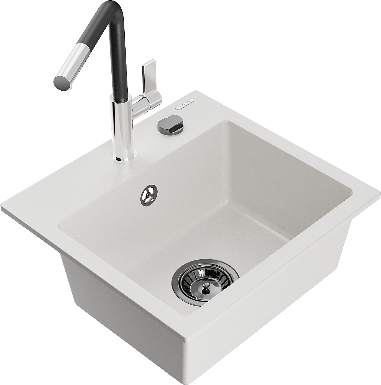 Mexen Milo 1-medencés gránit mosogató Flora konyhai csapteleppel, fehér - 6505-20-670401-07-B