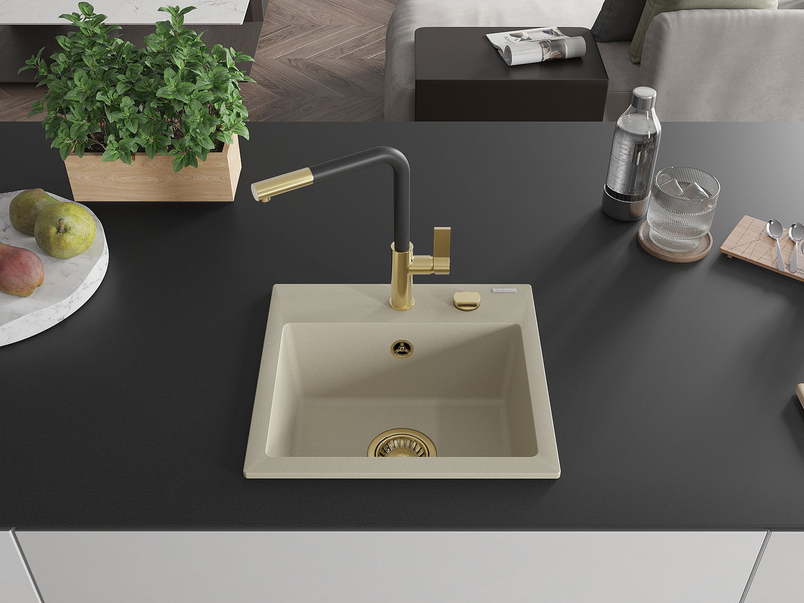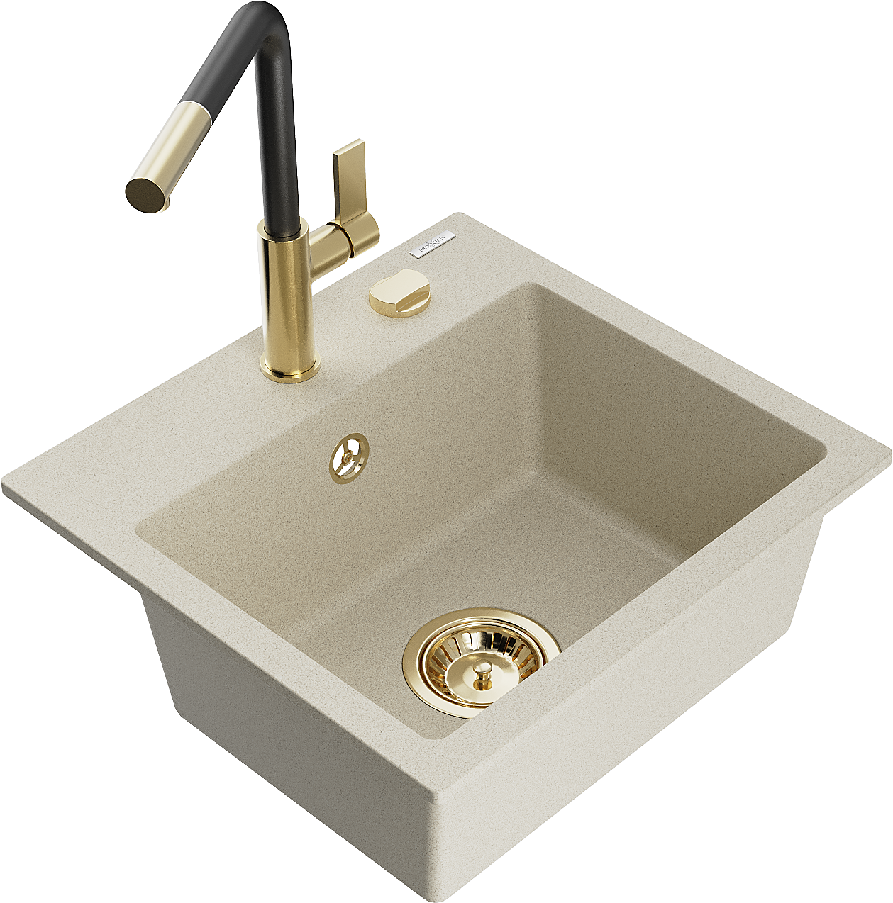 Mexen Milo gránit mosogató 1-medencés konyhai csapteleppel Flora, bézs - 6505-69-670401-57-G